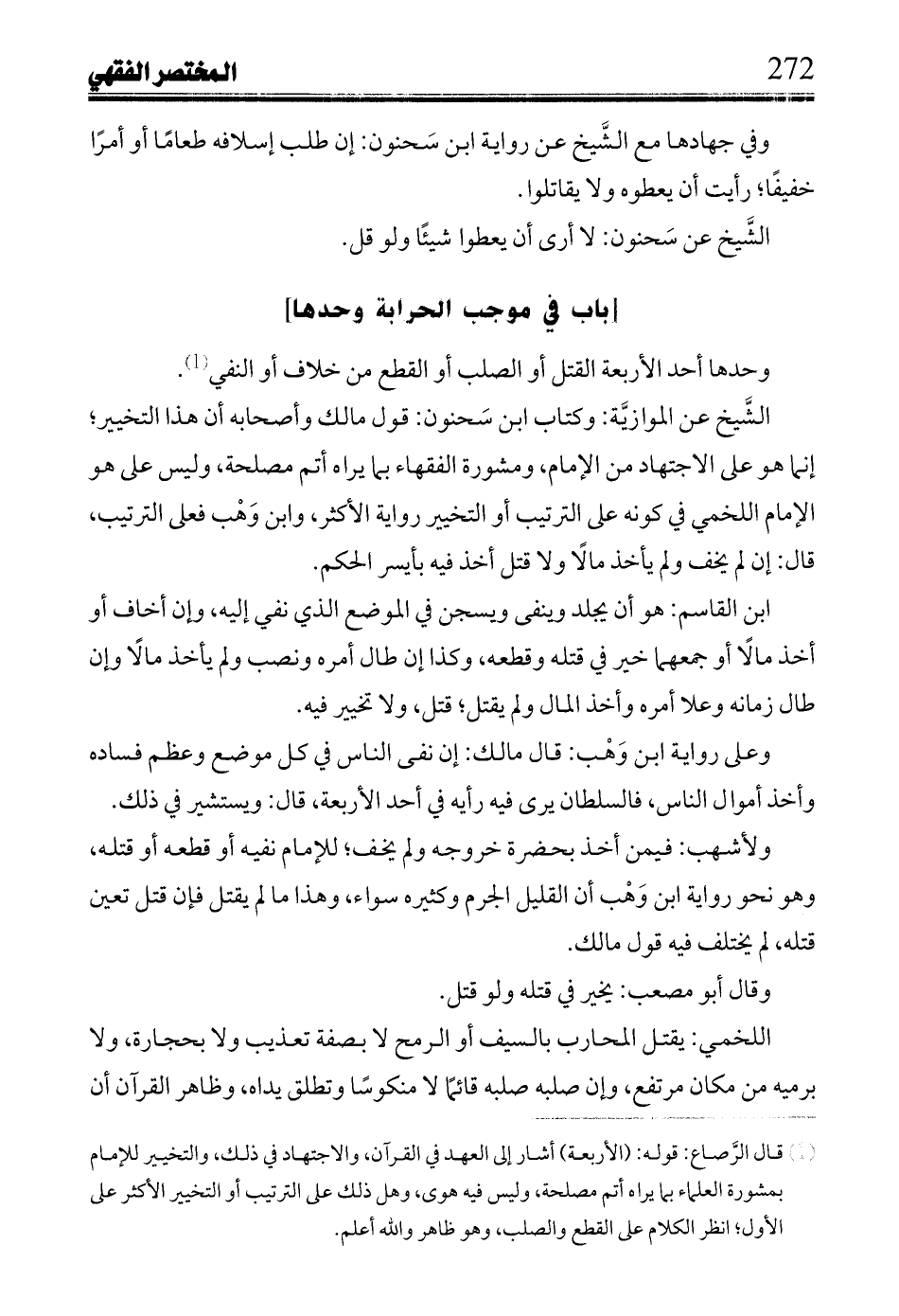 [باب في موجب الحرابة وحدها]