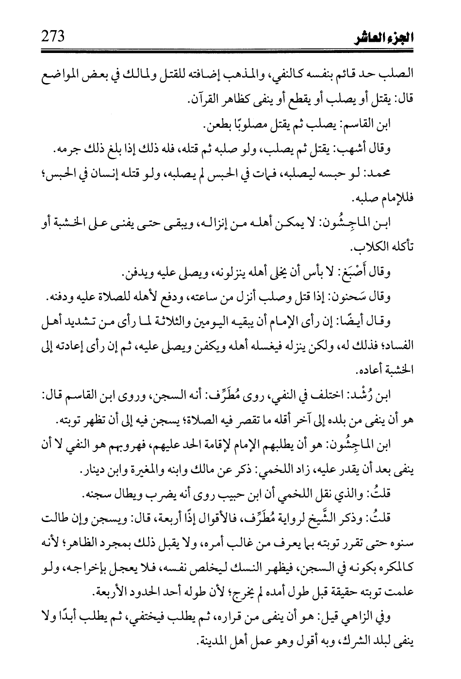 ابن القاسم: يصلب ثم يقتل مصلوباً بطعن.