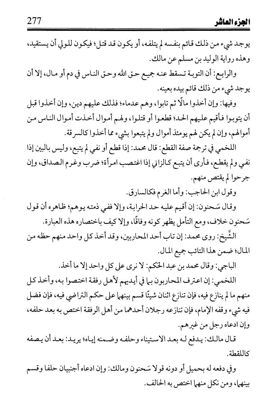 وقال سَحنون: إن أقيم عليه حد الحرابة، وإلا ففي ذمته يوهم؛ ظاهره أن قول سَحنون خلاف، ومع التأمل يظهر كونه وفاقاً، وإلا كيف باختصار هذه العبارة.