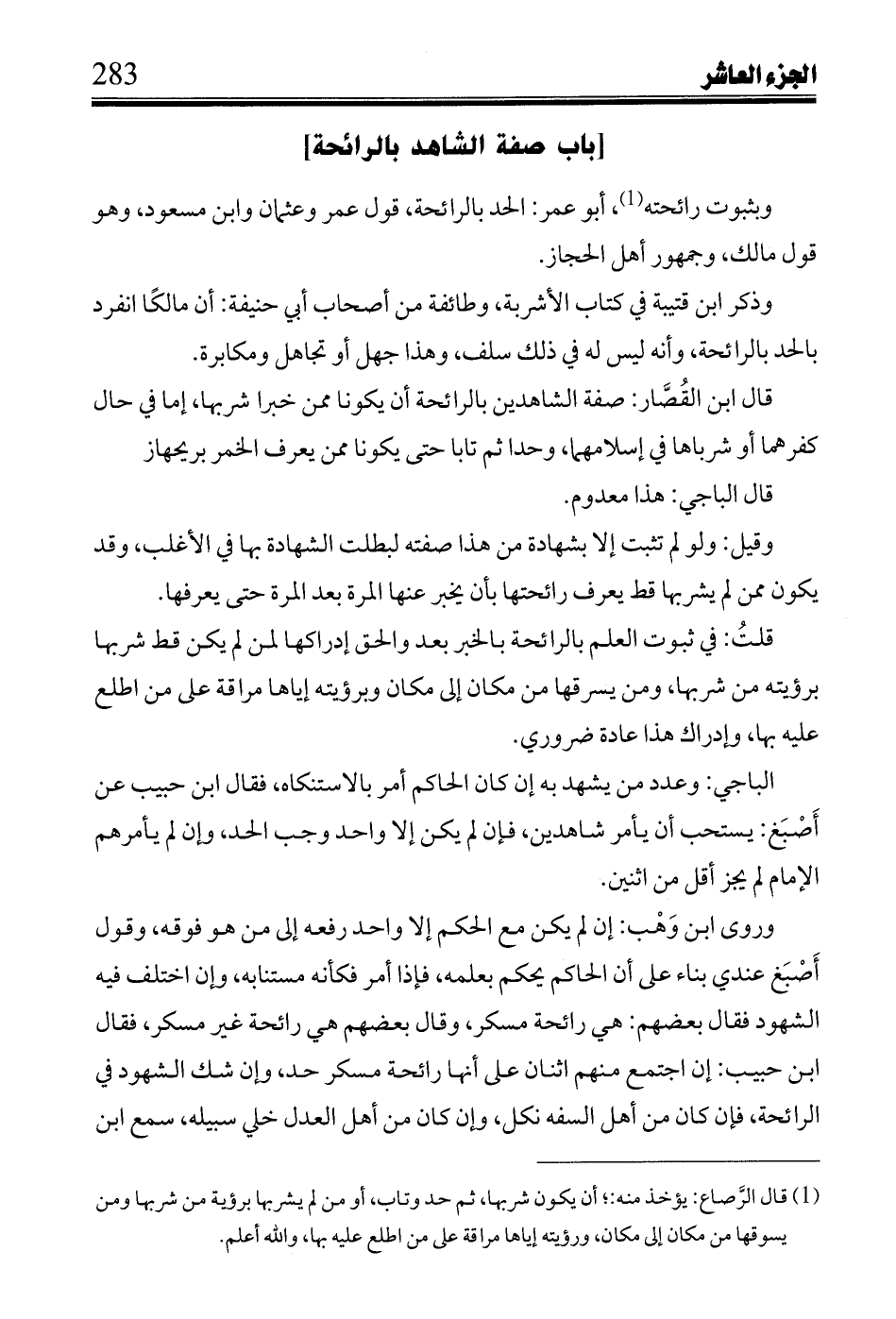 وبثبوت رائحته، أبو عمر: الحد بالرائحة، قول عمر وعثمان وابن مسعود، وهو قول مالك، وجمهور أهل الحجاز.