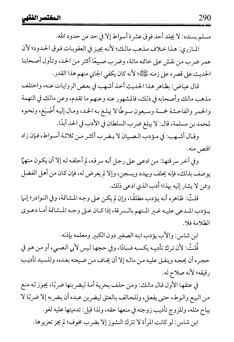 ابن شاس: والأب يؤدب ابنه الصغير دون الكبير ومعلمه بإذنه.