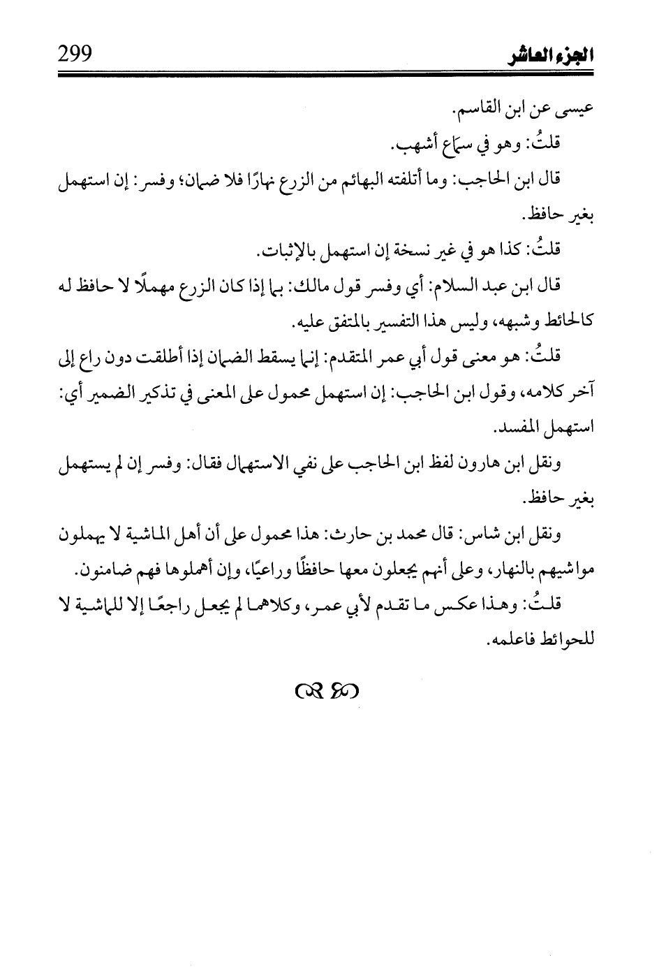 قال ابن عبد السلام: أي وفسر قول مال: بما إذا كان الزرع مهملاً لا حافظ له كالحائط وشبهه، وليس هذا التفسير بالمتفق عليه.