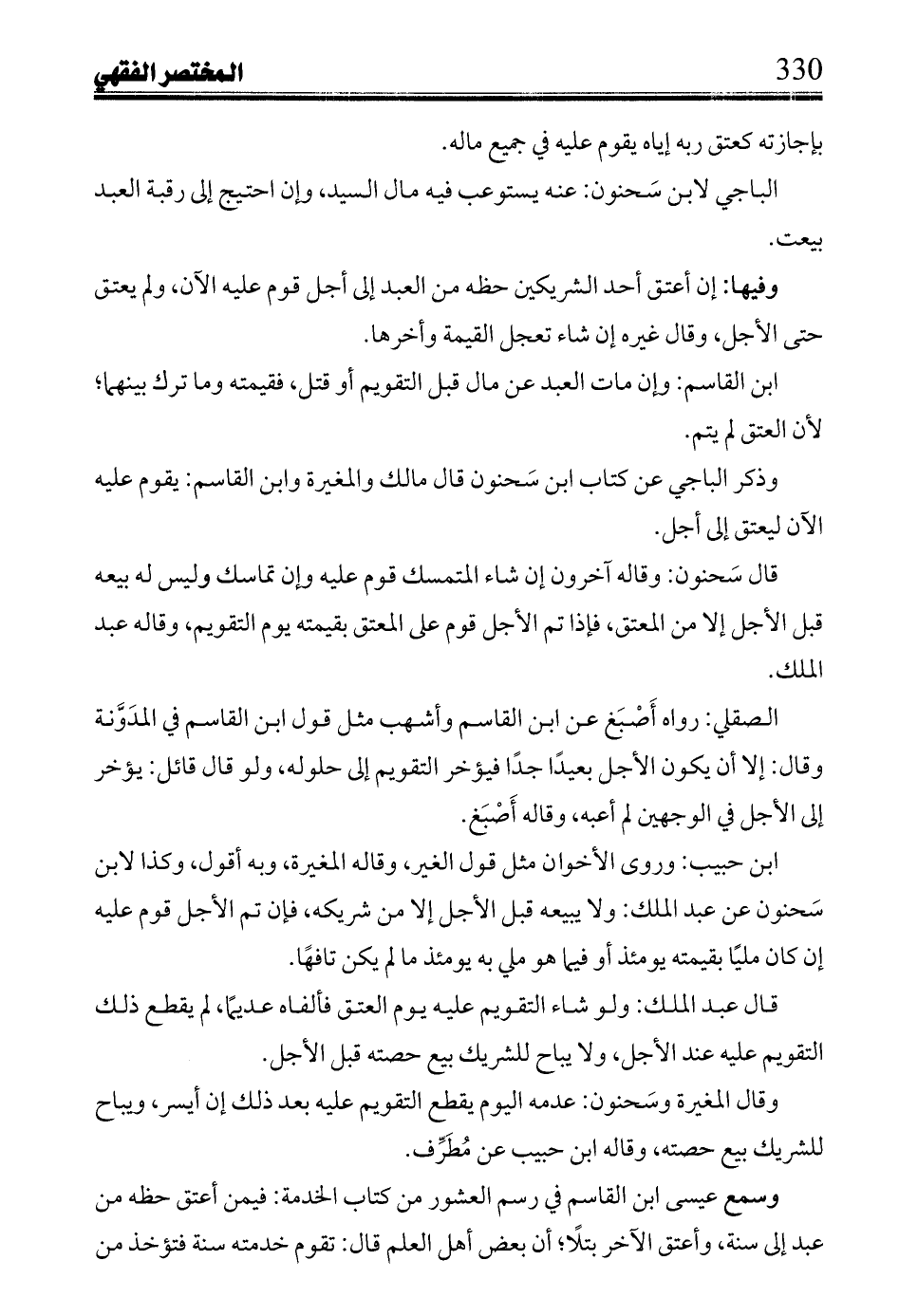 ابن حبيب: وروى الأخوان مثل قول الغير, وقاله المغيرة, وبه أقول , وكذا لابن سحنون عن عبد الملك: ولا يبيعه قبل الأجل إلا من شريكه, فإن تم الأجل قوم عليه إن كان مليا بقيمته يومئذ أو فيما هو ملى به يومئذ أو فيما هو ملى به يومئذ ما لم يكن تافها.