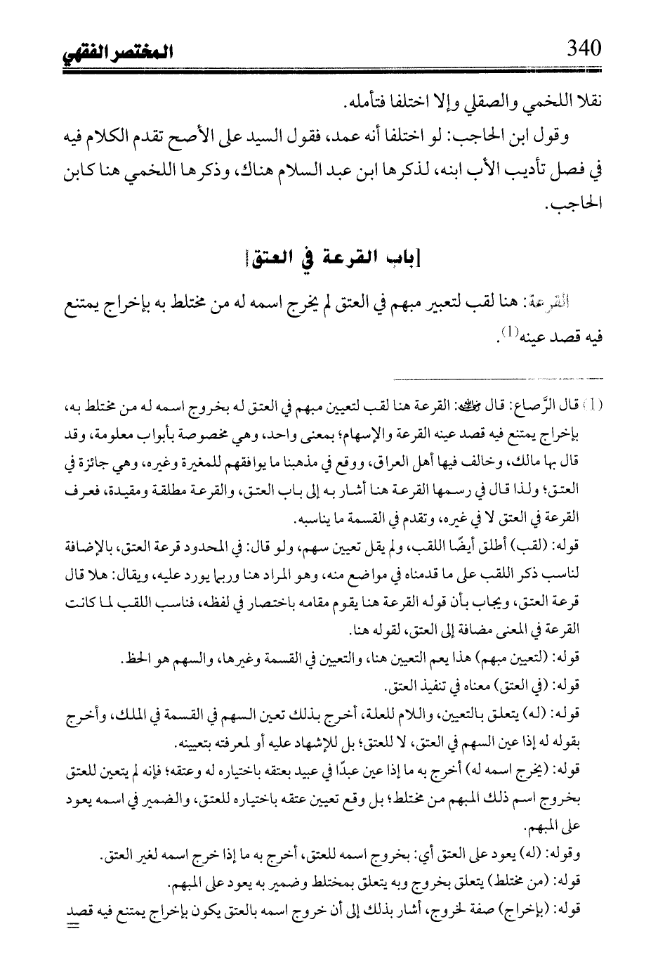 القرعة: هنا لقب لتعبير مبهم فى العتق لم يخرج اسمه له من مختلط به بإخراج يمتنع فيه قصد عينه.