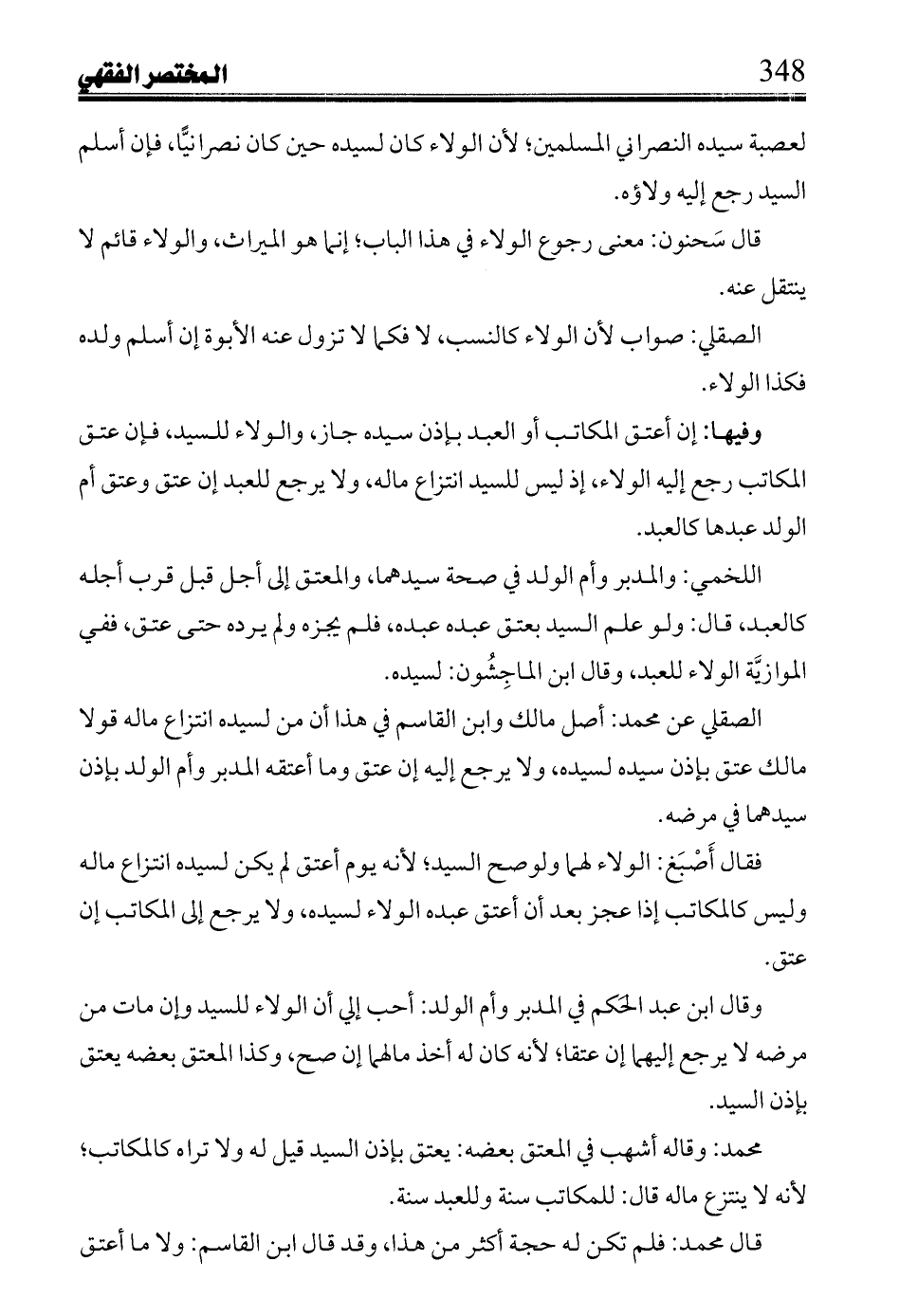 قال سحنون: معنى رجوع الولاء فى هذا الباب؛ إنما هو الميراث, والولاء قائم لا ينتقل عنه.