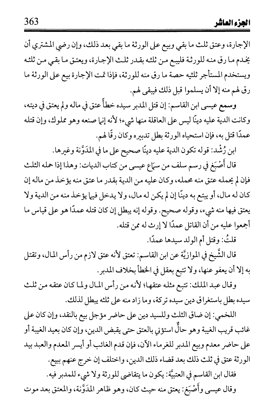 ابن رشد: قوله تكون الدية عليه دينًا صحيح على ما في المدونة وغيرها.