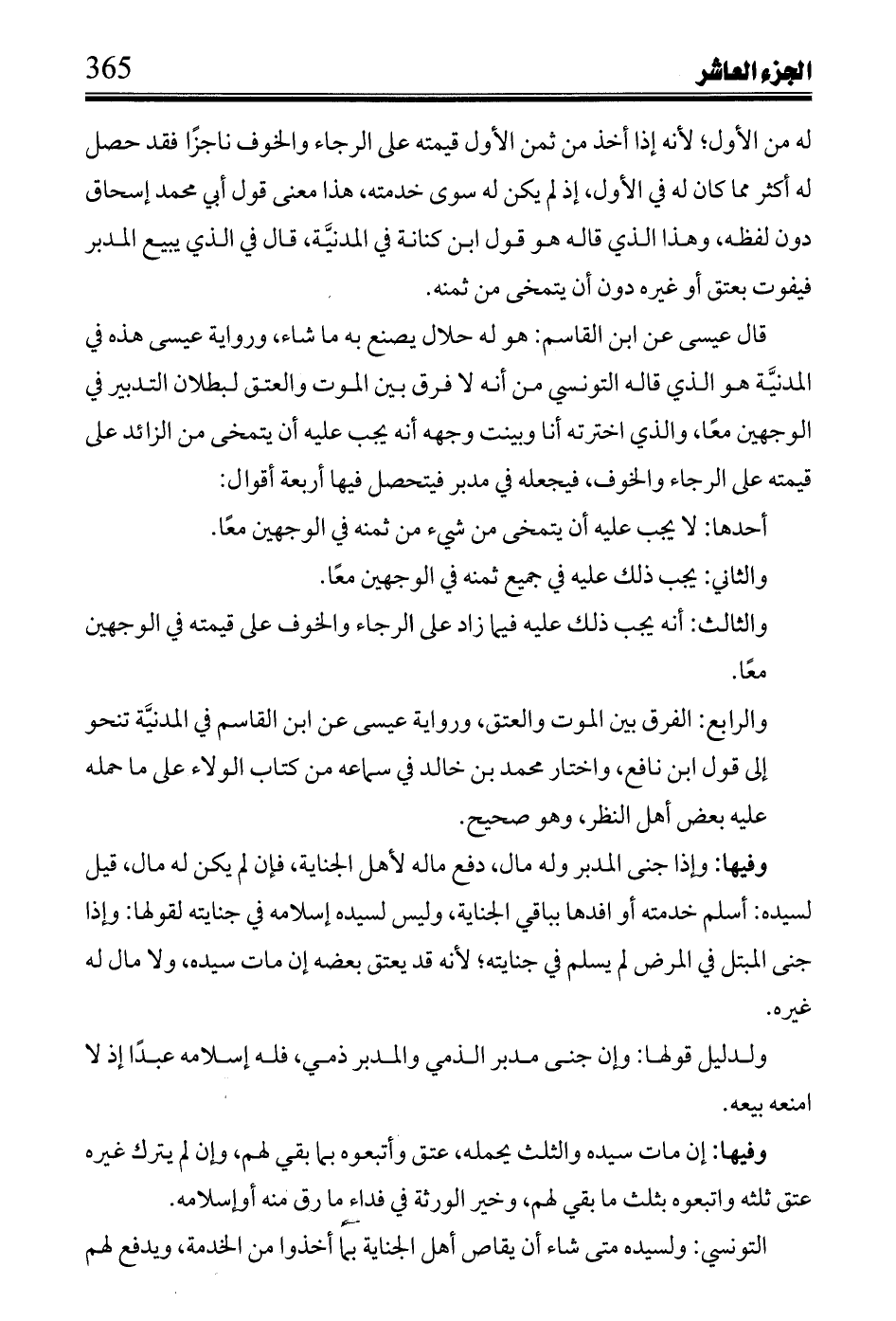 قال عيسى عن ابن القاسم: هو له حلال يصنع به ما شاء، وروية عيسى هذه في المدنية هو الذي قاله التونسي من أنه لا فرق بين الموت والعتق لبطلان التدبير في الوجهين معًا، والذي اخترته أنا وبينت وجهه أنه يجب عليه أن يتمخى من الزائد على قيمته على الرجاء والخوف، فيجعله في مدبر فيتحصل فيها أربعة أقوال.