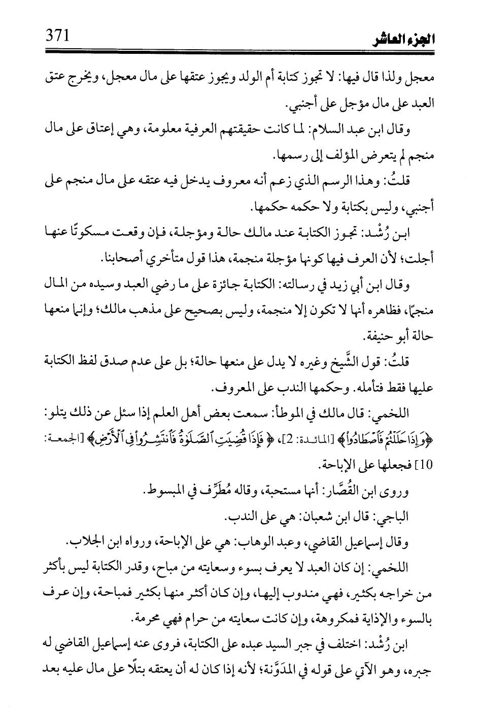 قلت: وهذا الرسم الذي زعم أنه معروف يدخل فيه عتقه على كال منجم على أجنبي، وليس بكتابة ولا حكمه حكمها.