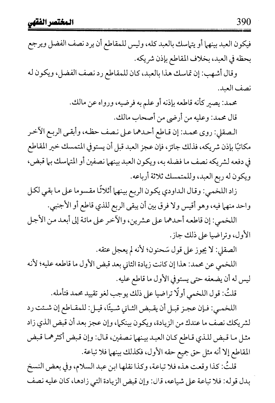 فيكون العبد بينهما أو يتماسك بالعبد كله، وليس للمقاطع أن يرد نصف الفضل ويرجع بحظه في العبد، بخلاف المقاطع بإذن شريكه.