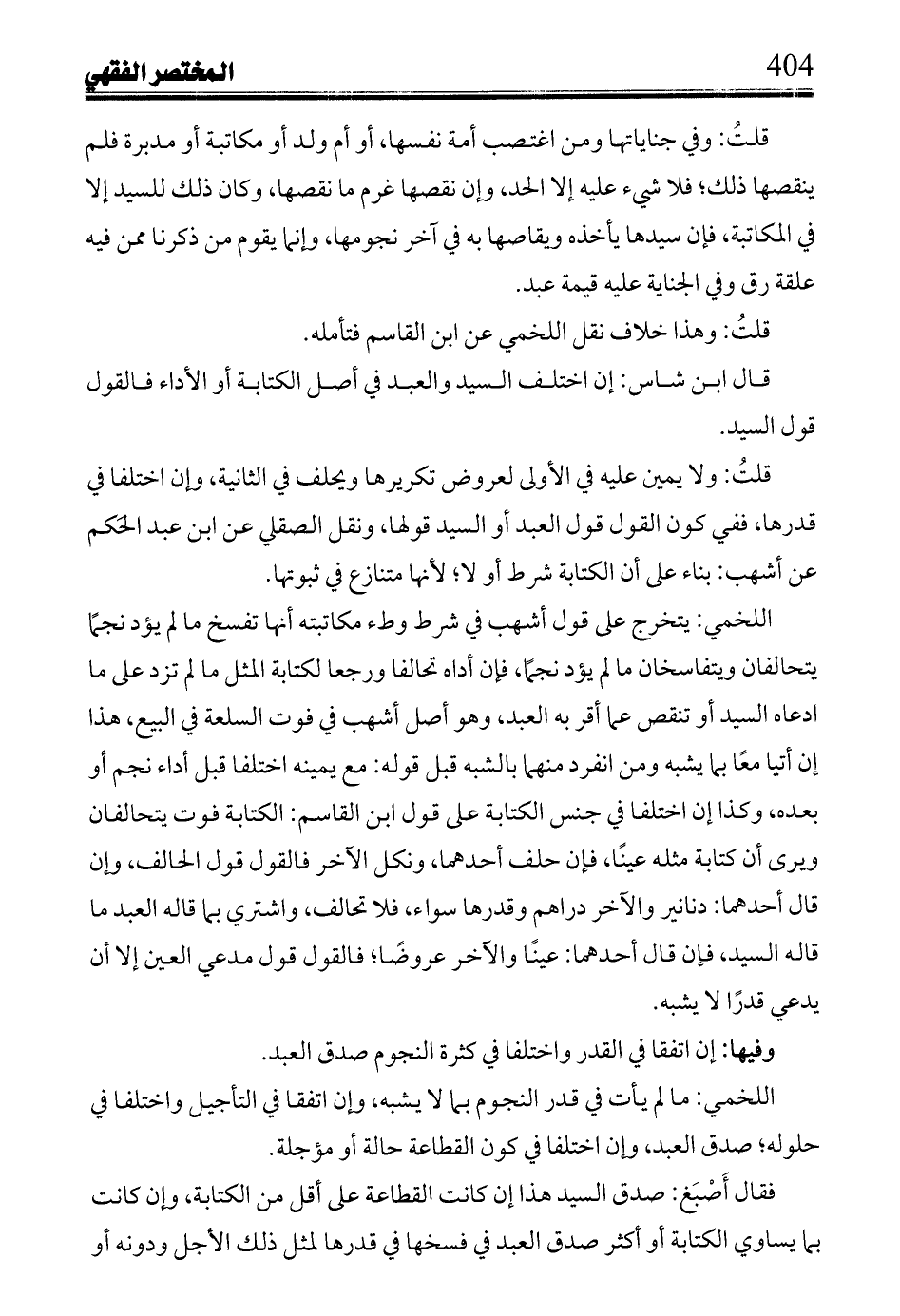 اللخمي: يتخرج على قول أشهب في شرط وطء مكاتبته أنها تفسخ ما لم يؤد نجماً يتحالفان ويتفاسخان ما لم يؤد نجماً، فإن أداه تحالفا ورجعا لكتابة المثل ما لم تزد على ما ادعاه السيد أو تنقص عما أقر به العبد، وهو أصل أشهب في فوت السلعة في البيع، هذا إن أتيا معاً بما يشبه ومن انفرد منهما بالشبه قبل قوله: مع يمينه اختلفا قبل أداء نجم أو بعده، وكذا إن اختلفا في جنس الكتابة على قول ابن القاسم: الكتابة فوت يتحالفان ويرى أن كتابة مثله عيناً، فإن حلف أحدهما، ونكل الآخر فالقول قول الحالف، وإن قال أحدهما: دنانير والآخر دراهم وقدرها سواء، فلا تحالف، واشترى بما قاله العبد ما قاله السيد، فإن قال أحدهما: عيناً والآخر عروضاً؛ فالقول قول مدعي العين إلا أن يدعي قدراً لا يشبه.