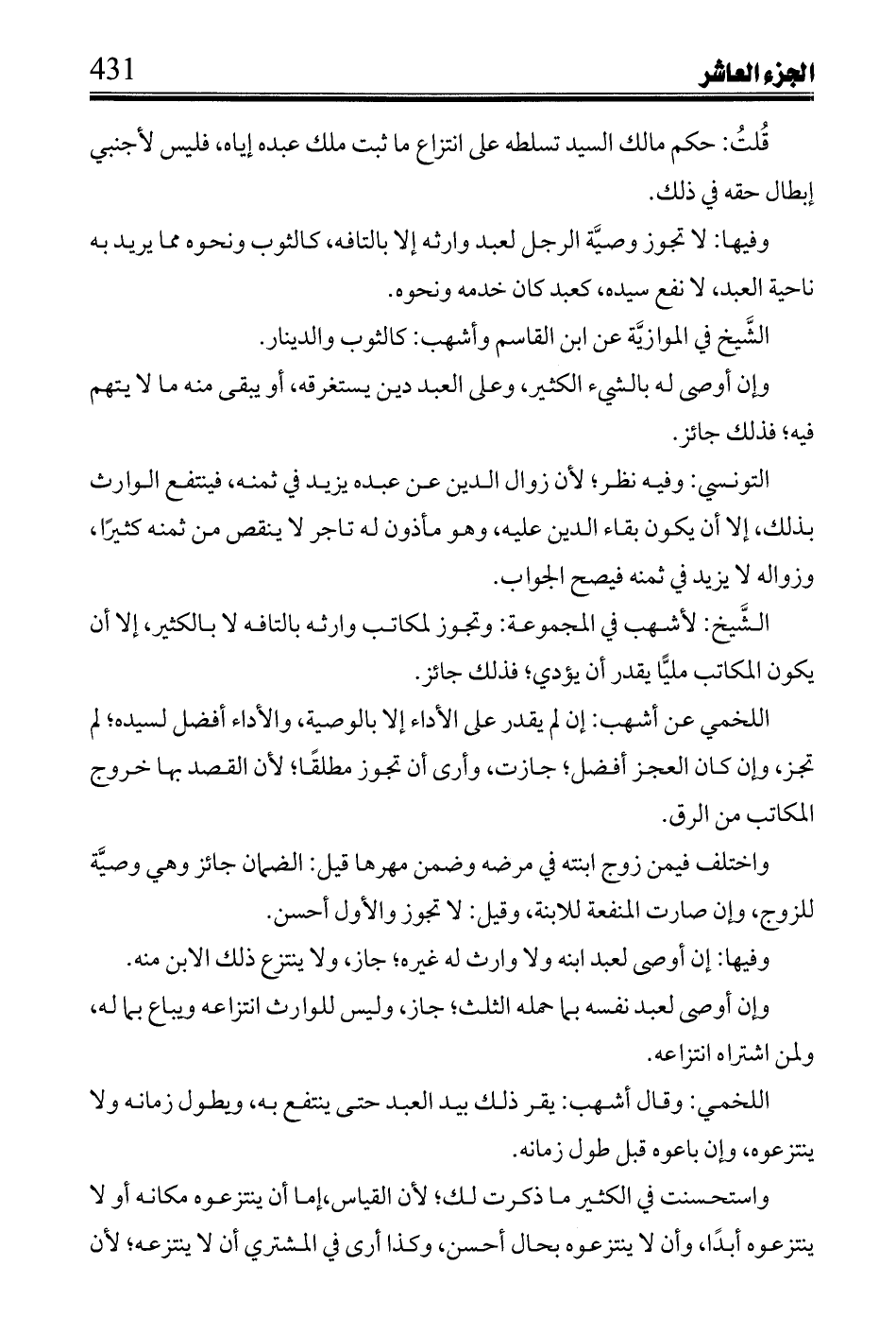 التونسي: وفيه نظر؛ لأن زوال الدين عن عبده يزيد في ثمنه, فينتفع الوارث بذلك, إلا أن يكون بقاء الدين عليه, وهو مأذون له تاجر لا ينقص من ثمنه كثيرا, وزواله لا يزيد في ثمنه فيصح الجواب.
