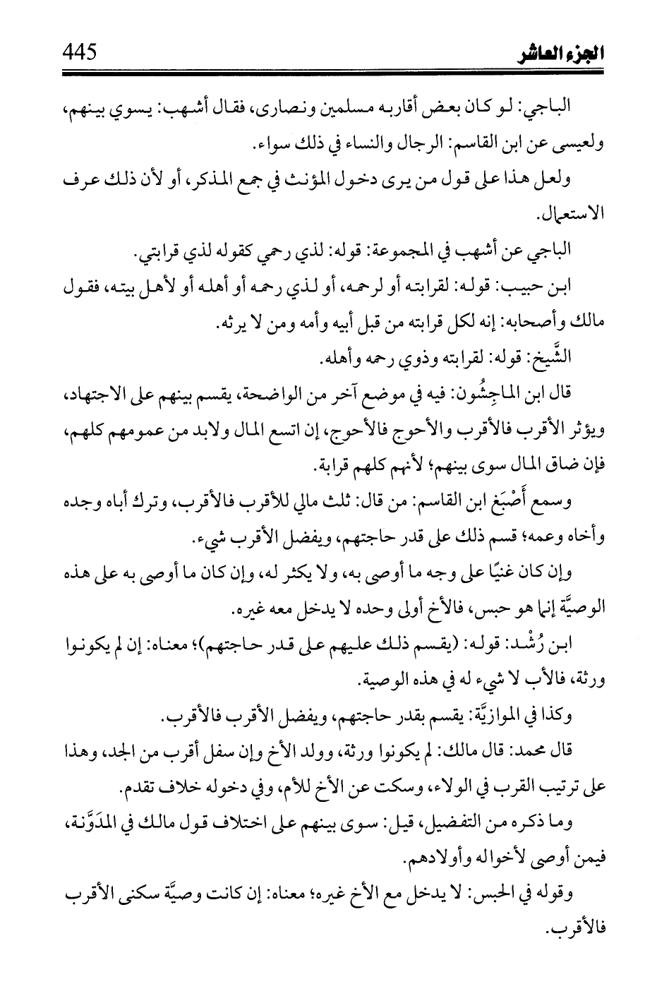 ابن حبيب: قوله: لقرابته أو لرحمه، أو لذي رحمه أو أهله أو لأهل بيته، فقول مالك وأصحابه: إنه لكل قرابته من قبل أبيه وأمه ومن لا يرثه.