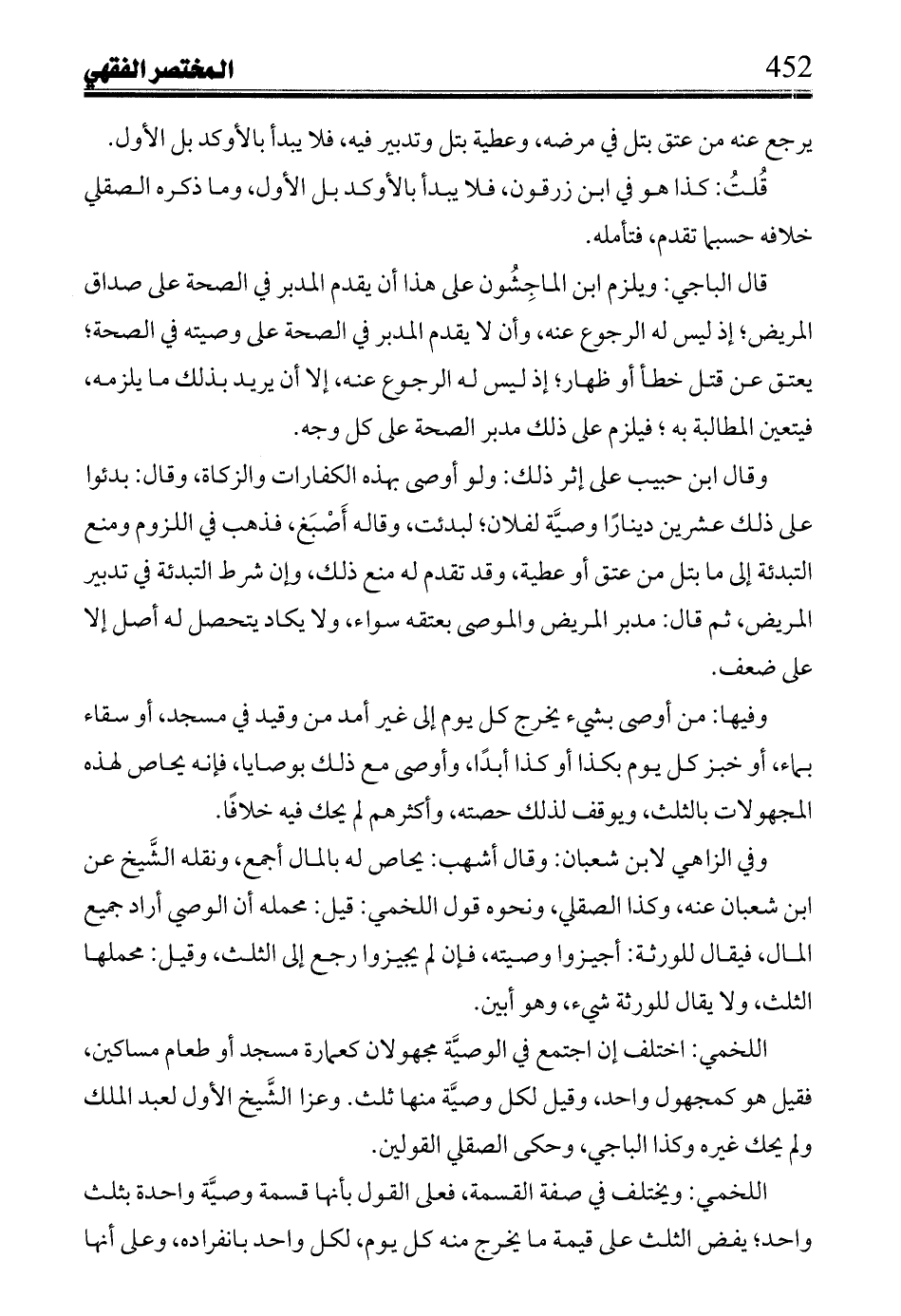 وقال ابن حبيب على إثر ذلك: ولو أوصى بهذه الكفارات والزكاة، وقال: بدئوا على ذلك عشرين ديناراً وصية لفلان؛ لبدئت، وقاله أَصْبَغ، فذهب في اللزوم ومنع التبدئة إلى ما بتل من عتق أو عطية، وقد تقدم له منع ذلك، وإن شرط التبدئة في تدبير المريض، ثم قال: مدبر المريض والموصى بعتقه سواء، ولا يكاد يتحصل له أصل إلا على ضعف.