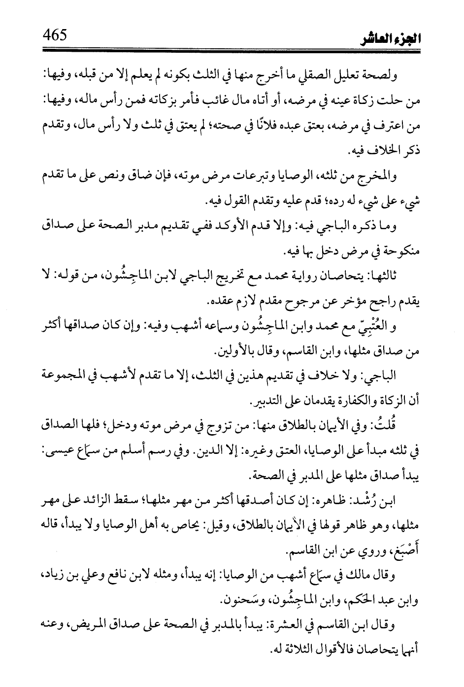 وقال مالك في سماع أشهب من الوصايا: إنه يبدأ، ومثله لابن نافع وعلى بن زياد، وابن عبد الحَكم، وابن الماجِشُون، وسَحنون.