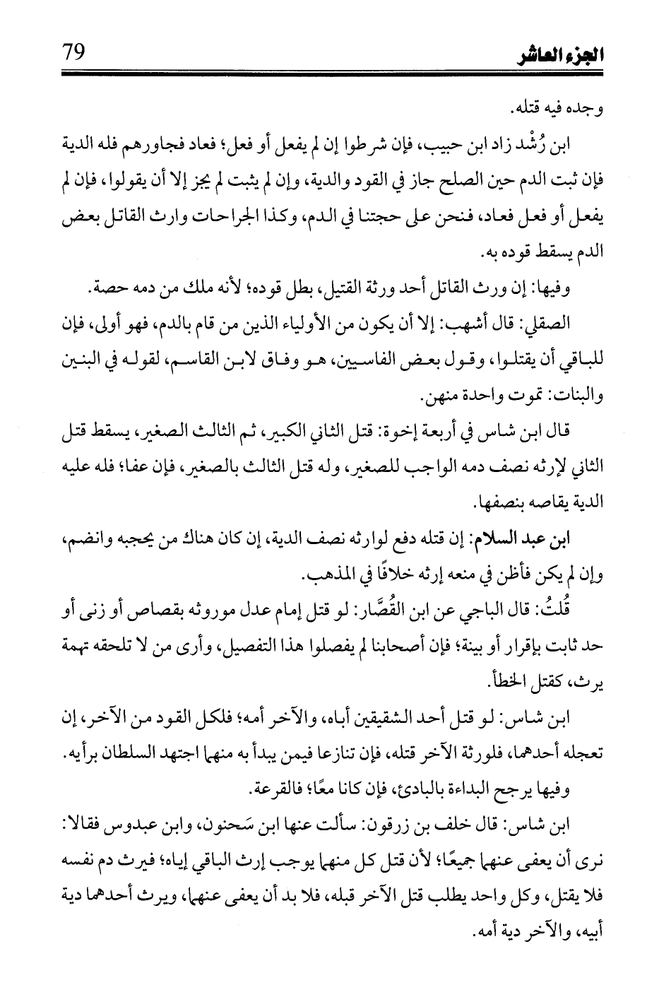 ابن رشد زاد ابن حبيب، فإن شرطوا إن لم يفعل أو فعل؛ فعاد فجاورهم فله الدية فإن ثبت الدم حين الصلح جاز في القود والدية، وإن لم يثبت لم يجز إلا أن يقولوا، فإن لم يفعل أو فعل فعاد، فنحن على حجتنا في الدم، وكذا الجراحات وارث القاتل بعض الدم يسقط قوده به