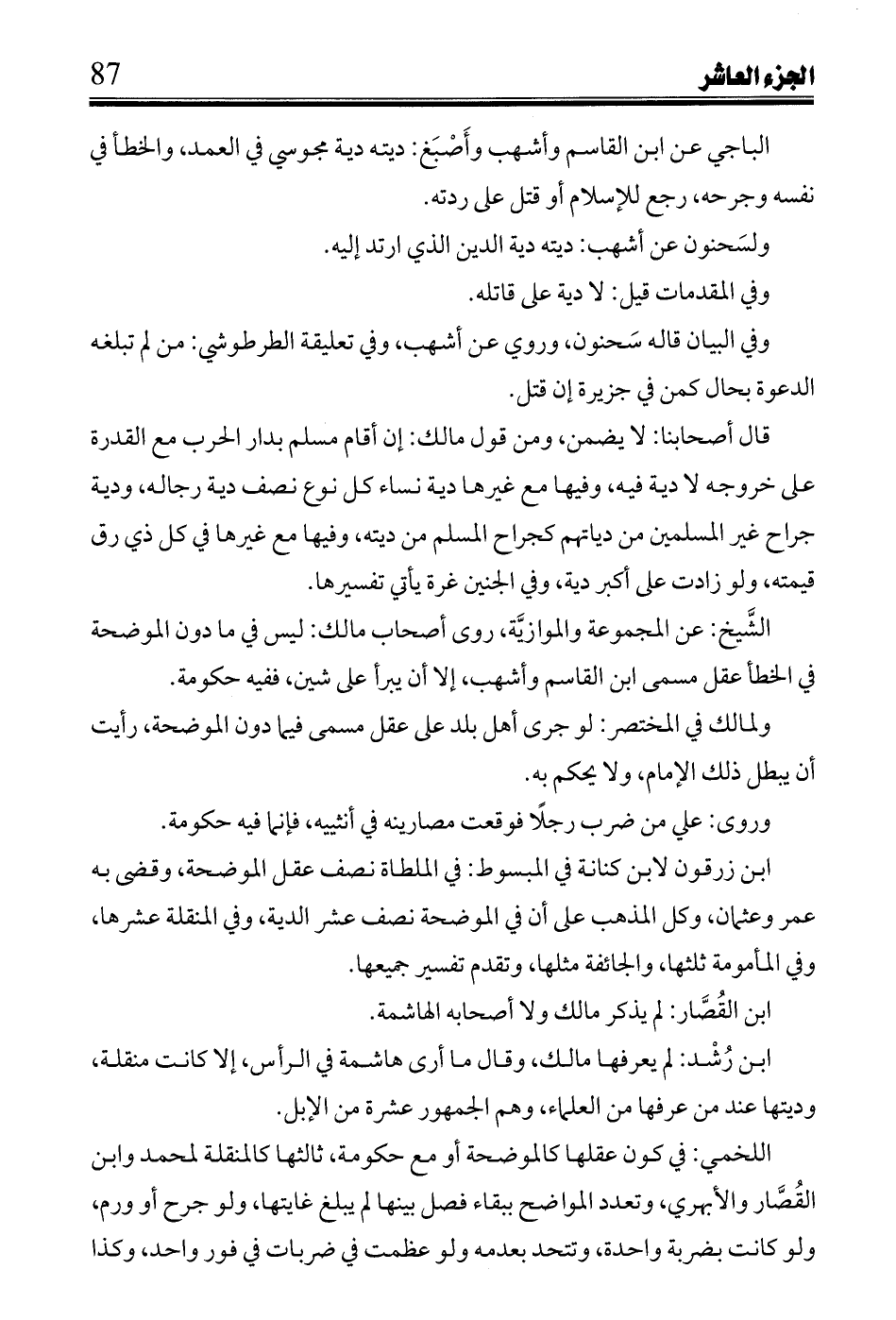 ابن رشد: لم يعرفها مالك، وقال ما أرى هاشمة في الرأس، إلا كانت منقلة، وديتها عند من عرفها من العلماء، وهم الجمهور عشرة من الإبل.