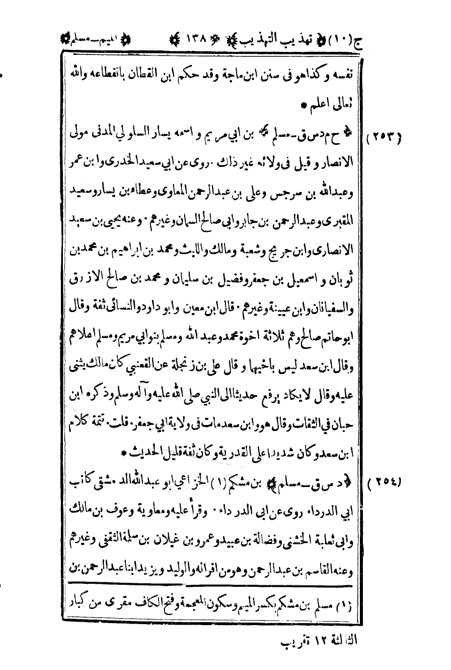 1 مسلم بن مشكم بكسر الميم وسكون المعجمة وفتح الكاف مقرى من كبار الثالثة 12 تقريب.