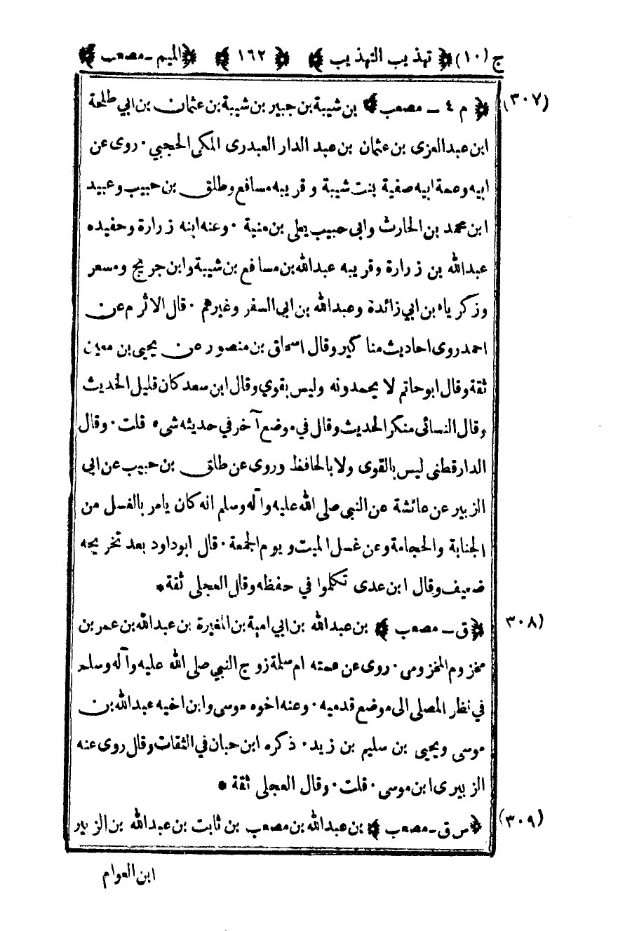 309- "س ق – مصعب" بن عبد الله بن مصعب بن ثابت بن عبد الله بن الزبير
