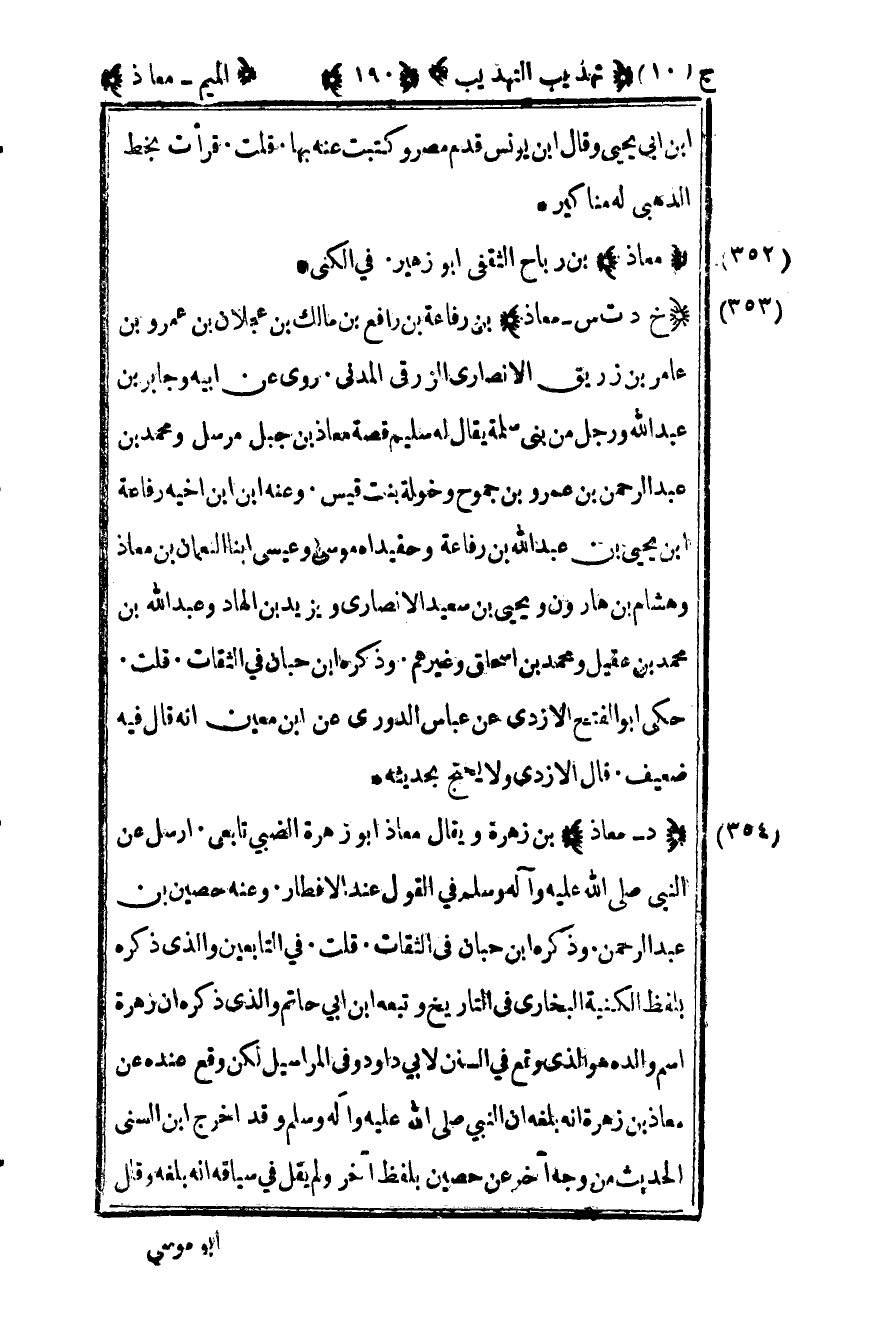 352- "معاذ" بن رباح الثقفي أبو زهير في الكنى.