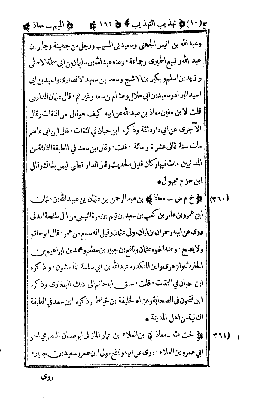 361- "خت ت – معاذ" بن العلاء بن عمار المازني أبو غسان البصري أخو أبي عمرو بن العلاء روى عن أبيه ونافع مولى ابن عمر وسعيد بن جبير