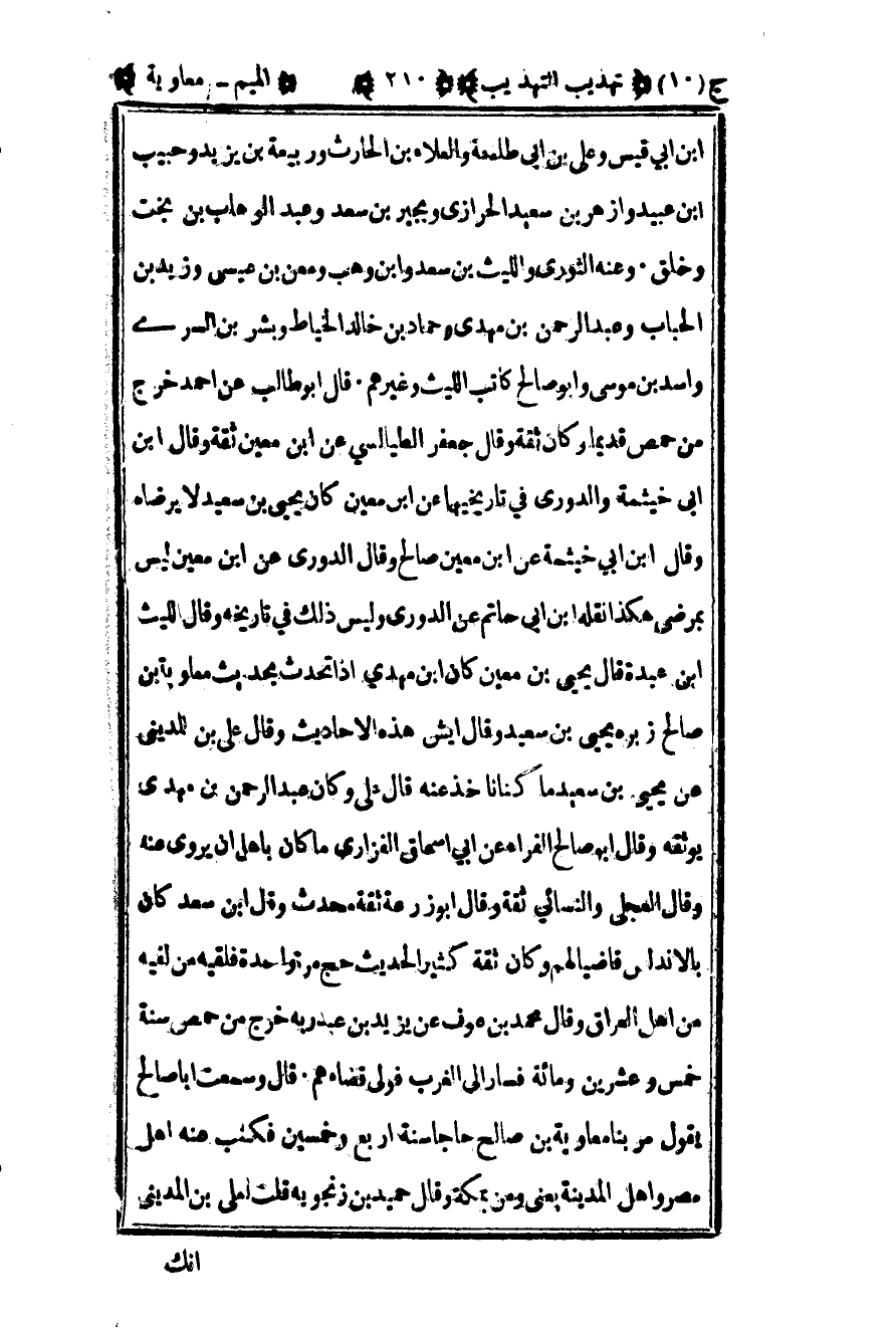 ابن أبي قيس وعلي بن أبي طلحة والعلاء بن الحارث وربيعة بن يزيد وحبيب بن عبيد وأزهر بن سعيد الحرازي وبجير بن سعد وعبد الوهاب بن بخت وخلق وعنه الثوري والليث بن سعد وابن وهب ومعن بن عيسى وزيد بن الحباب وعبد الرحمن بن مهدي وحماد بن خالد الخياط وبشر بن السري وأسد بن موسى وأبو صالح كاتب الليث وغيرهم قال أبو طالب عن أحمد خرج من حمص قديما وكان ثقة وقال جعفر الطيالسي عن بن معين ثقة وقال بن أبي خيثمة والدوري في تاريخهما عن بن معين كان يحيى بن سعيد لا يرضاه وقال بن أبي خيثمة عن بن معين صالح وقال الدوري عن بن معين ليس بمرضي هكذا نقله أبن أبي حاتم عن الدوري وليس ذلك في تاريخه وقال الليث بن عبدة قال يحيى بن معين كان بن مهدي إذا تحدث بحديث معاوية بن صالح زبره يحيى بن سعيد وقال إيش هذه الأحاديث وقال علي بن المديني عن يحيى بن سعيد ما كنا نأخذ عنه قال علي وكان عبد الرحمن بن مهدي يوثقه وقال أبو صالح الفراء عن أبي إسحاق الفزاري ما كان بأهل أن يروي عنه وقال العجلي والنسائي ثقة وقال أبو زرعة ثقة محدث وقال بن سعد كان بالأندلس قاضيا لهم وكان ثقة كثير الحديث حج مرة واحدة فلقيه من لقيه من أهل العراق وقال محمد بن عوف عن يزيد بن عبد ربه خرج من حمص سنة خمس وعشرين ومائة فسار إلي الغرب فولى قضاءهم قال وسمعت أبا صالح يقول مر بنا معاوية بن صالح حاجا سنة أربع وخمسين فكتب عنه أهل مصر وأهل المدينة يعني ومن بمكة وقال حميد بن زنجويه قلت لعلي بن المديني