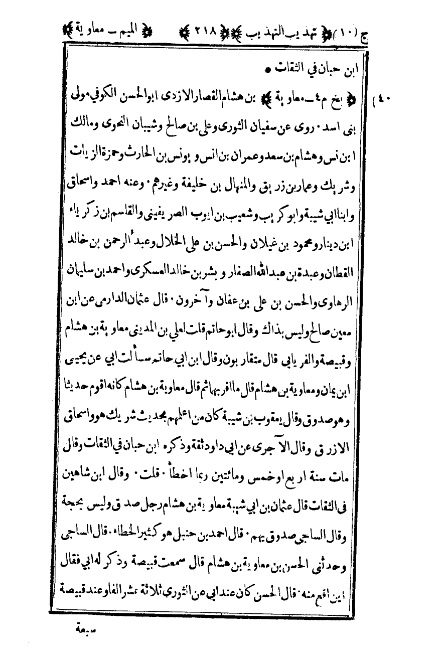 401- "بخ م 4 – معاوية" بن هشام القصار الأزدي أبو الحسن الكوفي مولى بني أسد روى عن سفيان الثوري وعلي بن صالح وشيبان النحوي ومالك بن أنس وهشام بن سعد وعمران بن أنس بن الحارث وحمزة الزيات وشريك وعمار بن زريق والمنهال بن خليفة وغيرهم وعنه أحمد وإسحاق وابنا أبي شيبة وأبو كريب وشعيب بن أيوب الصريفيني والقاسم بن زكريا بن دينار ومحمود بن غيلان والحسن بن علي الخلال وعبد الرحمن بن خالد القطان وعبدة بن عبد الله الصفار وبشر بن خالد العسكري وأحمد بن سليمان الرهاوي والحسن بن علي بن عفان وآخرون قال عثمان الدارمي عن بن معين صالح وليس بذاك وقال أبو حاتم قلت لعلي بن المديني معاوية بن هشام وقبيصة والفريابي قال متقاربون وقال بن أبي حاتم سألت أبي عن يحيى بن يمان ومعاوية بن هشام قال ما أقربهما ثم قال معاوية بن هشام كأنه أقوم حديثا وهو صدوق وقال يعقوب بن شيبة كان من أعلمهم بحديث شريك هو وإسحاق الأزرق وقال الآجري عن أبي داود ثقة وذكره بن حبان في الثقات وقال مات سنة أربع أو خمس ومائتين ربما أخطأ قلت وقال بن شاهين في الثقات قال عثمان بن أبي شيبة معاوية بن هشام رجل صدق وليس بحجة وقال الساجي صدوق يهم قال أحمد بن حنبل هو كثير الخطأ قال الساجي وحدثني الحسن بن معاوية بن هشام قال سمعت قبيصة وذكر له أبي فقال أين أقع منه قال الحسن كان عند أبي عن الثوري ثلاثة عشر ألفا وعند قبيصة