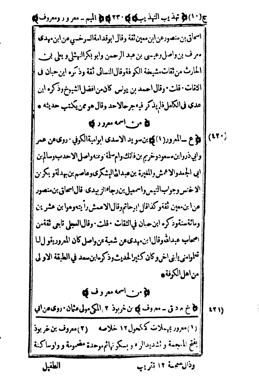 2 معروف بن خزبوذ بفتح المعجمة وتشديد الراء وبسكونها ثم موحدة مضمومة وواو ساكنة وذال معجمة 12 تقريب.