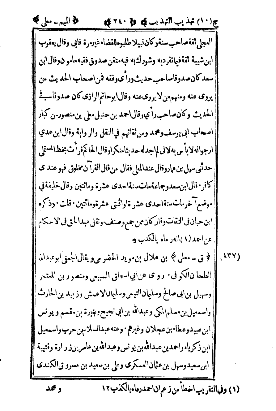 437 – "ق – معلى" بن هلال بن مؤيد الحضرمي ويقال الجعفي أبو عبد الله الطحان الكوفي روى عن أبي إسحاق السبيعي ومنصور بن المعتمر وسهيل بن أبي صالح وسليمان التيمي وسليمان الأعمش وزبيد بن الحارث وإسماعيل بن مسلم المكي وعبد الله بن أبي نجيح ومغيرة بن مقسم ويونس بن عبيد وعطاء بن عجلان وغيرهم وعنه عبد السلام بن حرب وإسماعيل بن زكريا وأحمد بن عبد الله بن يونس وعبد الله بن عامر بن زرارة وقتيبة بن سعيد وسهل بن عثمان العسكري وعلي بن سعيد بن مسروق الكندي