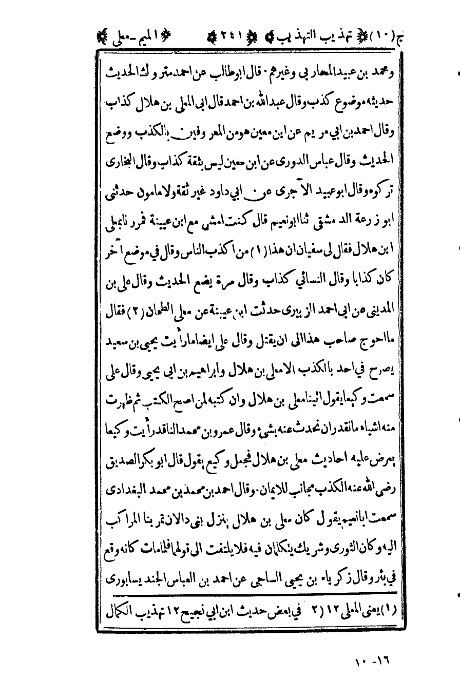 ومحمد بن عبيد المحاربي وغيرهم قال أبو طالب عن أحمد متروك الحديث حديثه موضوع كذب وقال عبد الله بن أحمد قال أبي المعلى بن هلال كذاب وقال أحمد بن أبي مريم عن بن معين هو من المعروفين بالكذب ووضع الحديث وقال عباس الدوري عن بن معين ليس بثقة كذاب وقال البخاري تركوه وقال أبو عبيد الآجري عن أبي داود غير ثقة ولا مأمون حدثني أبو زرعة الدمشقي ثنا أبو نعيم قال كنت امشي مع بن عيينة فمررنا بمعلى بن هلال فقال لي سفيان إي هذا1 من أكذب الناس وقال في موضع آخر كان كذابا وقال النسائي كذاب وقال مرة يضع الحديث وقال علي بن المديني عن أبي أحمد الزبيري حدثت بن عيينة عن معلى الطحان2 فقال ما أحوج صاحب هذا إلى أن يقتل وقال علي أيضا ما رأيت يحيى بن سعيد يصرح في أحد بالكذب إلا معلى بن هلال وإبراهيم بن أبي يحيى وقال علي سمعت وكيعا يقول أتينا معلى بن هلال وأن كتبه لمن أصح الكتب ثم ظهرت منه أشياء ما نقدر أن نحدث عنه بشيء وقال عمرو بن محمد الناقد رأيت وكيعا يعرض عليه أحاديث معلى بن هلال فجعل وكيع يقول قال أبو بكر الصديق رضي الله عنه الكذب مجانب للإيمان وقال أحمد بن محمد بن محمد البغدادي سمعت أبا نعيم يقول كان بن هلال ينزل بني دالان تمر بنا المراكب إليه وكان الثوري وشريك يتكلمان فيه فلا يلتفت إلى قولهما فلما مات كأنه وقع في بئر وقال زكريا بن يحيى الساجي عن أحمد بن العباس الجند يسابوري