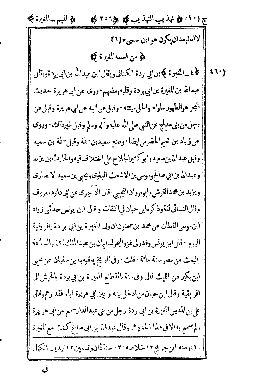 460- "4 – المغيرة" بن أبي بردة الكناني ويقال بن عبد الله بن أبي بردة ويقال عبد الله بن المغيرة بن أبي بردة وقلبه بعضهم روى عن أبي هريرة حديث البحر هو الطهور ماؤه والحل ميتته وقيل عن أبيه عن أبي هريرة وقيل عن رجل بن بني مدلج عن النبي صلى الله عليه وسلم وقيل غير ذلك وروى عن زياد بن نعيم الحضرمي أيضا وعنه سعيد بن سلمة وقيل سلمة بن سعيد وقيل عبد الله بن سعيد وأبو كثير الجلاح على اختلاف فيه والحارث بن يزيد وعبد الله بن أبي صالح وموسى بن الأشعث البلوي ويحيى بن سعيد الأنصاري ويزيد بن محمد القرشي وأبو مروان التجيبي قال الآجري عن أبي داود معروف وقال النسائي ثقة وذكره ابن حبان في الثقات وقال بن يونس حدثني زياد بن موسى القطان عن محمد بن سحنون أن ولد المغيرة بن أبي بردة بأفريقية اليوم قال ابن يونس وقد ولي غزو البحر لسليمان بن عبد الملك2 والسالفة بالبعث من مصر سنة مائة قلت وفي تاريخ يعقوب بن سفيان عن يحيى بن بكير عن الليث قال وفي سنة مائة طلع المغيرة بن أبي بردة بالجيش إلى إفريقية وقال ابن حبان من ادخل بينه وبين أبي هريرة أباه فقد وهم وقال علي بن المديني المغيرة بن أبي بردة رجل من بني عبد الدار سمع من أبي هريرة ولم يسمع به إلا في هذا الحديث وقال عبد الله بن أبي صالح كنت مع المغيرة