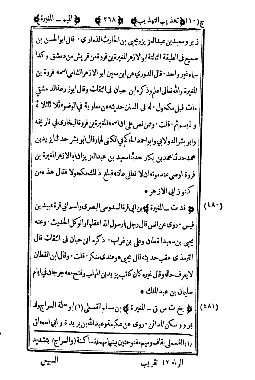 481- "بخ ت س ق – المغيرة" بن مسلم القسملي1 أبو سلمة السراج ولد بمرو وسكن المدائن روى عن عكرمة وعبد الله بن بريد وأبي إسحاق