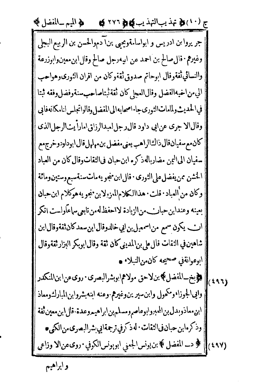 497 – "د – المفضل" بن يونس الجعفي أبو يونس الكوفي روى عن الأوزاعي