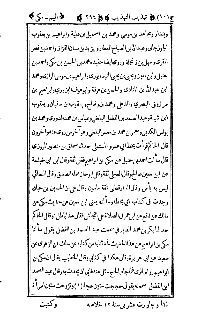 وبندار ومجاهد بن موسى ومحمد بن إسماعيل بن علية وإبراهيم بن يعقوب الجوزجاني وعبد الله بن الصباح العطار ويزيد بن سنان القزاز وأحمد بن نصر المقري وسهل بن زنجلة وروى أيضا حفيده ومحمد بن الحسن بن مكي وأحمد بن حنبل وابن معين ويحيى بن يحيى النيسابوري وإبراهيم بن موسى الرازي ومحمد بن عبد الله بن المنادى والحسن بن عرفة وأبو عوف البزوري وإبراهيم بن مرزوق البصري والذهلي ومحمد بن وضاح ويعقوب بن سفيان ويعقوب بن شيبة وعبد الصمد بن الفضل البلخي وعباس بن محمد الدوري ومحمد بن يونس الكديمي ومعمر بن محمد بن معمر البلخي وهو آخر من روى عنه وآخرون قال الحاكم قرأت بخط أبي عمرو المستملي حدثنا إسحاق بن منصور المروزي قال سألت أحمد بن حنبل عن مكي بن إبراهيم فقال ثقة وقال بن أبي خيثمة عن بن معين صالح وقال العجلي ثقة وقال أبو حاتم محله الصدق وقال النسائي ليس به بأس وقال الدارقطني ثقة مأمون وقال علي بن الحسين ابن حبان وجدت في كتاب أبي بخطة وسألته يعني عن ابن معين عن حديث مكي عن مالك عن نافع عن ابن عمر في الصلاة على النجاشي فقال هذا باطل وقال الحاكم حدثنا بكر بن محمد الصيرفي سمعت عبد الصمد بن الفضل يقول سألنا مكي بن إبراهيم عن هذا الحديث فحدثنا به من كتابه عن مالك عن الزهري عن سعيد عن أبي هريرة وقال هكذا في كتابي وقال الخطيب يقال إن مكي بن إبراهيم رواه بالري فلما جاء بالحج سئل عنه فأبى أن يحدث به وقال عبد الصمد بن الفضل سمعت يقول حججت ستين حجة1 وتزوجت ستين امرأة