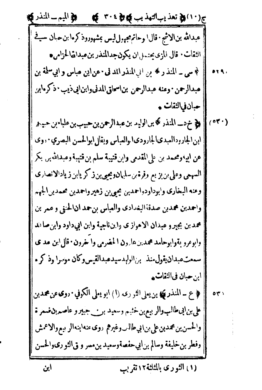 531- "ع – المنذر" بن يعلى الثوري1 أبو يعلى الكوفي روى عن محمد بن علي بن أبي طالب والربيع بن خيثم وسعيد بن جبير وعاصم بن ضمرة والحسن بن محمد بن علي بن أبي طالب وغيرهم روى عنه ابنه الربيع والأعمش وفطر بن خليفة وسالم بن أبي حفصة وسعيد بن مسروق الثوري والحسن