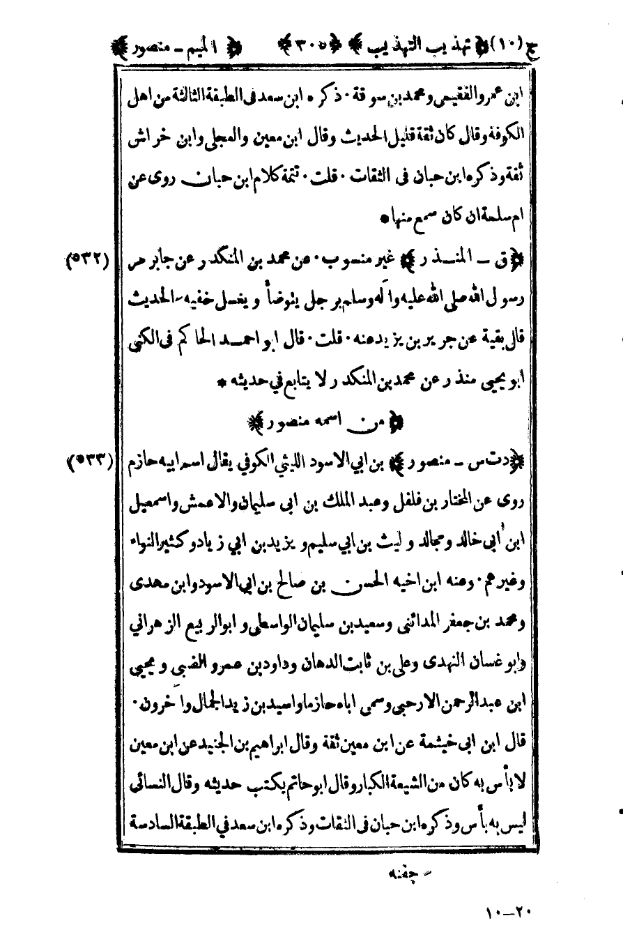 532 – "ق – المنذر" غير منسوب عن محمد بن المنكدر عن جابر مر رسول الله صلى الله عليه وسلم برجل يتوضأ ويغسل خفيه الحديث قال بقية عن جرير بن يزيد عنه قلت قال أبو أحمد الحاكم في الكنى أبو يحيى منذر عن محمد بن المنكدر لا يتابع في حديثه.
