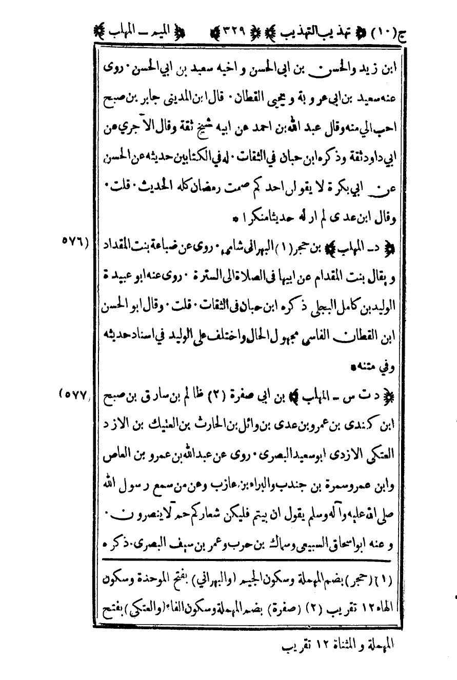 1 "حجر" بضم المهملة وسكون الجيم "والبهراني" بفتح الموحدة وسكون الهاء 12 تقريب.