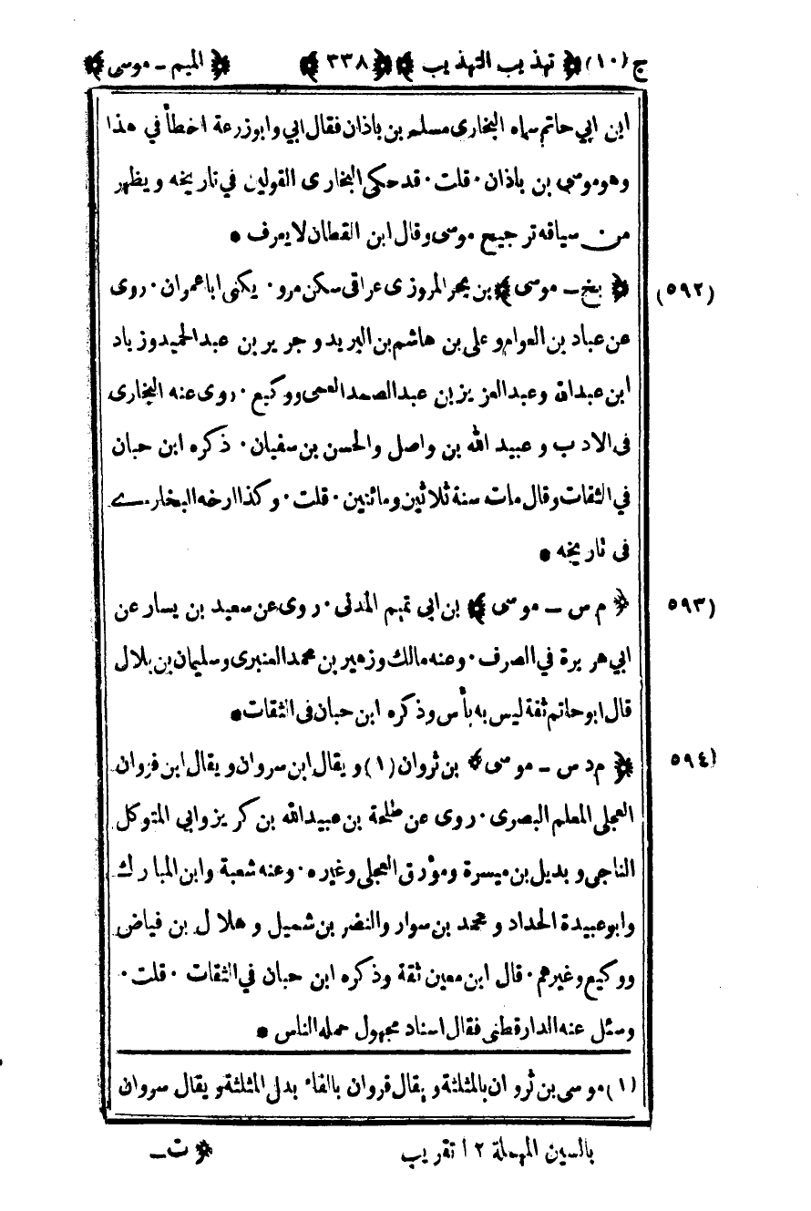 1 موسى بن ثروان بالمثلثة ويقال قروان بالفاء بدل المثلثة ويقال سروان بالسين المهملة 12 تقريب.