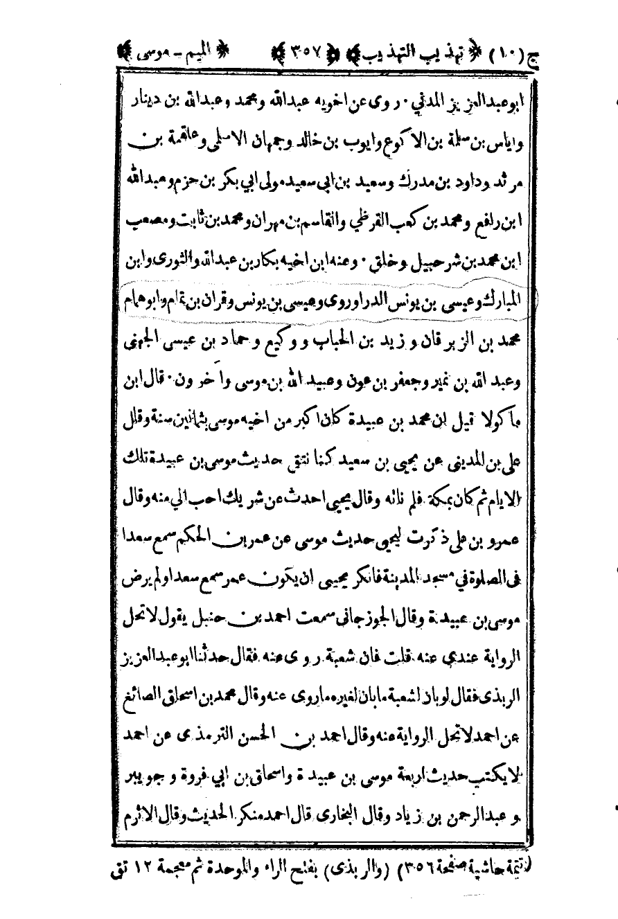 أبو عبد العزيز المدني روى عن أخويه عبد الله ومحمد وعبد الله بن دينار وأياس بن سلمة بن الأكوع وأيوب بن خالد وجهمان الأسلمي وعلقمة بن مرثد وداود بن مدرك وسعيد بن أبي سعيد مولى أبي بكر حزم وعبد الله بن رافع ومحمد بن كعب القرظي والقاسم بن مهران ومحمد بن ثابت ومصعب بن محمد بن شرحبيل وخلق وعنه بن أخيه بكار بن عبد الله والثوري وابن المبارك وعيسى ن يونس الدراوردي وعيسى بن يونس وقران بن تمام وأبو همام محمد بن الزبرقان وزيد بن الحباب ووكيع وحماد بن عيسى الجهني وعبد الله بن نمير وجعفر بن عون وعبيد الله بن موسى وآخرون قال ابن ماكولا قيل إن محمد بن عبيدة كان أكبر من أخيه موسى بثمانين سنة وقال علي بن المديني عن يحيى بن سعيد كنا نتقي حديث موسى بن عبيدة تلك الأيام ثم كان بمكة فلم نأته وقال يحيى أحدث عن شريك أحب إلي منه وقال عمرو بن علي ذكرت ليحيى حديث موسى عن عمر بن الحكم سمع سعدا في الصلاة في مسجد المدينة فأنكر يحيى أن يكون عمر سمع سعدا ولم يرض موسى بن عبيدة وقال الجوزجاني سمعت أحمد بن حنبل يقول لا تحل الرواية عندي عنه قلت فإن شعبة روى عنه فقال حدثنا أبو عبد العزيز الربذي فقال لو بان لشعبة ما بان لغيره ما روى عنه وقال محمد بن إسحاق الصائغ عن أحمد لا تحل الرواية عنه وقال أحمد بن الحسن الترمذي عن أحمد لا يكتب حديث أربعة موسى بن عبيدة وإسحاق بن أبي فروة وجويبر وعبد الرحمن بن زياد وقال البخاري قال أحمد منكر الحديث وقال الأثرم