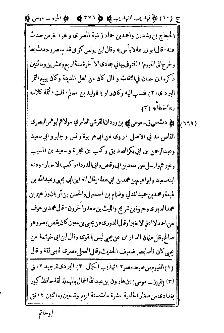 3 "تمييز – موسى" بن هارون بن عبد الله الحمال بالمهملة ثقة حافظ كبير بغدادي من صغار الحادية عشرة مات سنة أربع وتسعين ومائين 12 تق.
