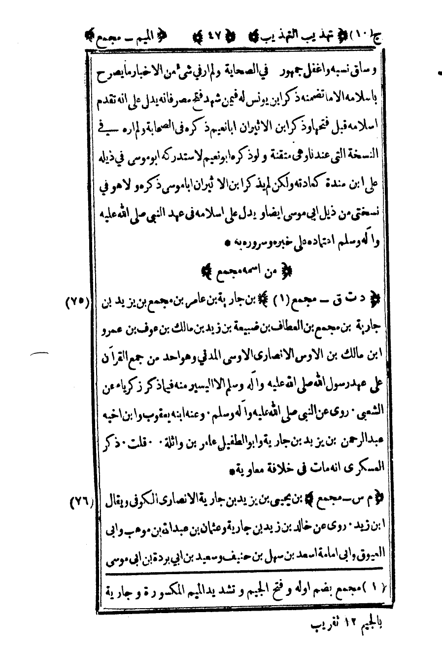 75- "د ت ق – مجمع1" بن جارية بن عامر بن مجمع بن يزيد بن جارية بن مجمع بن العطاف بن ضبيعة بن زيد بن مالك بن عوف بن عمرو بن مالك بن الأوس الأنصاري الأوسي المدني وهو أحد من جمع القرآن على عهد رسول الله صلى الله عليه وسلم إلا اليسير منه فيما ذكر زكريا عن الشعبي روى عن النبي صلى الله عليه وسلم وعنه ابنه يعقوب وابن أخيه عبد الرحمن بن يزيد بن جارية وأبو الطفيل عامر بن واثلة قلت ذكر العسكري أنه مات في خلافة معاوية.