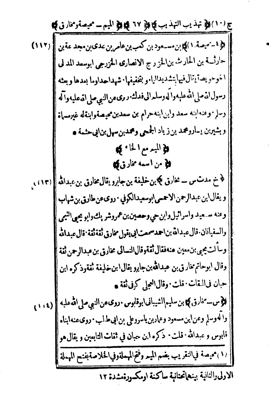 1 محيصة في التقريب بضم الميم وفتح المهملة وفي الخلاصة بفتح المهملة الأولى والثانية بينهما تحتانية ساكنة أو مكسورة مشددة 12.