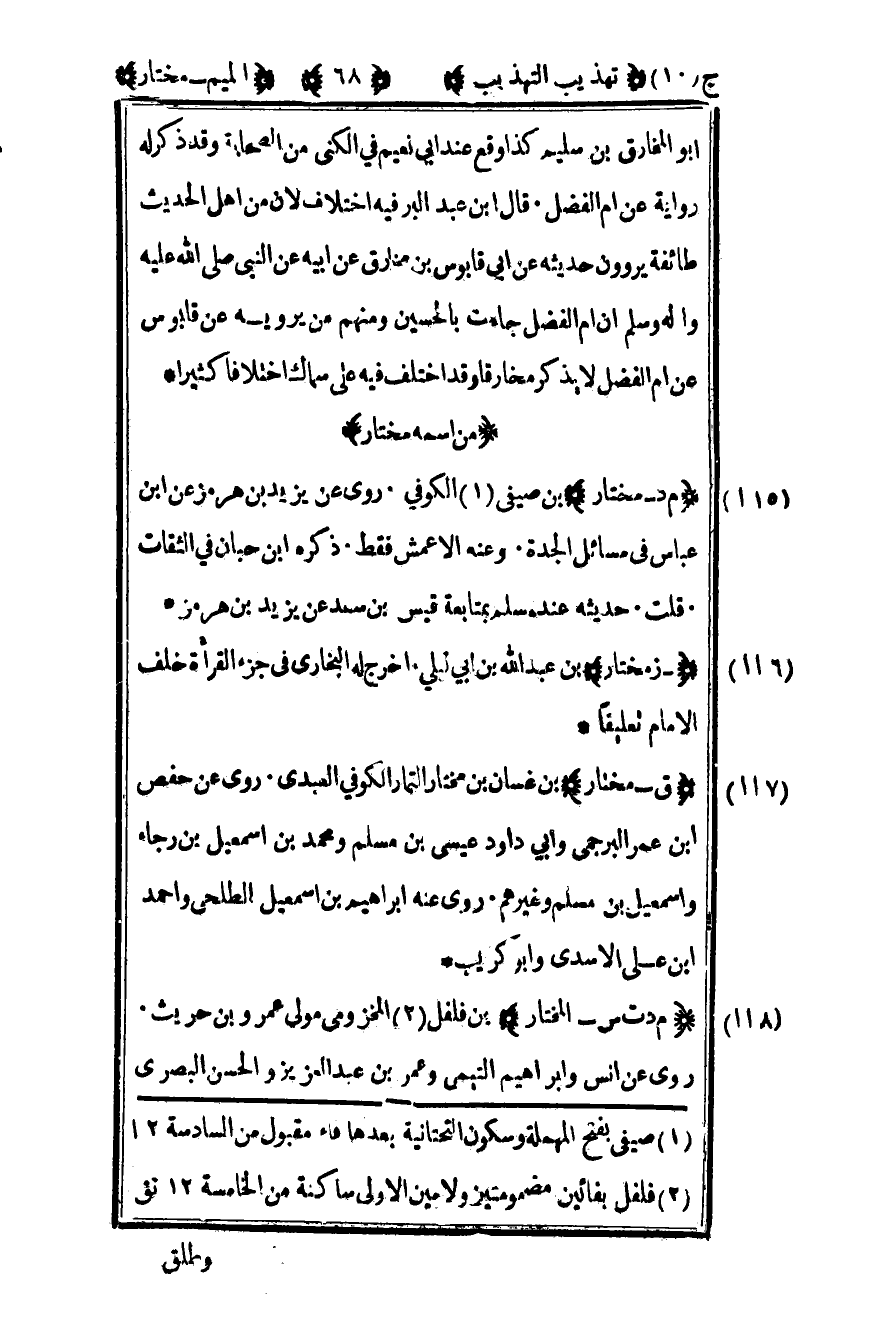116 - "ز – مختار" بن عبد الله بن أبي ليلى أخرج له البخاري في جزء القراءة خلف الإمام تعليقا.