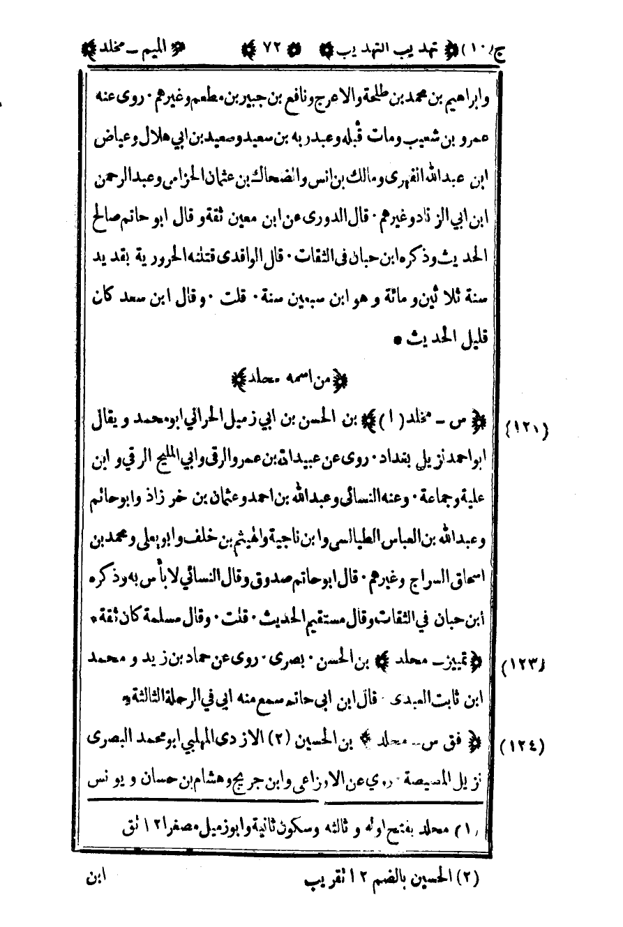 123 - "تمييز – مخلد" بن الحسن بصري روى عن حماد بن زيد ومحمد بن ثابت العبدي قال بن أبي حاتم سمع منه أبي في الرحلة الثالثة.