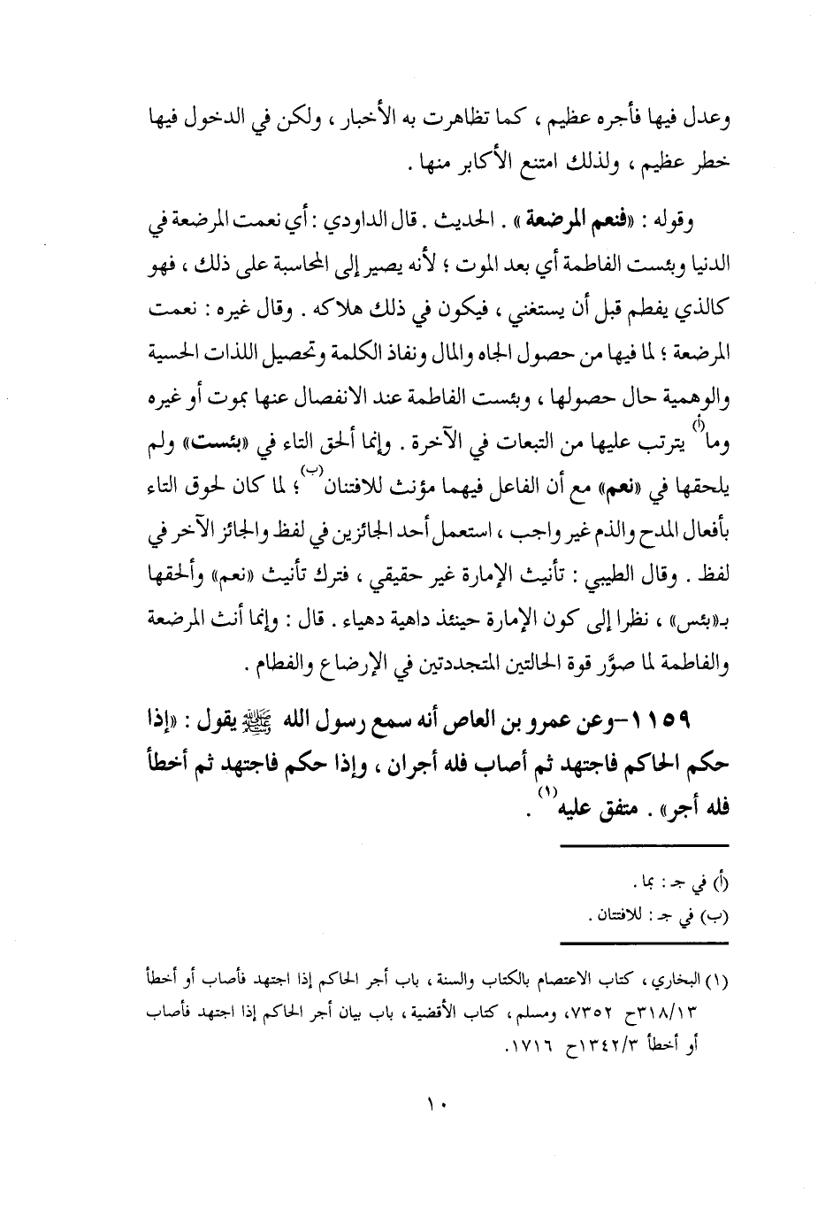 (¬1) البخاري، كتاب الاعتصام بالكتاب والسنة، باب أجر الحاكم إذا اجتهد فأصاب أو أخطأ 13/ 318 ح 7352، ومسلم، كتاب الأقضية، باب بيان أجر الحاكم إذا اجتهد فأصاب أو أخطأ 3/ 1342 ح 1716.