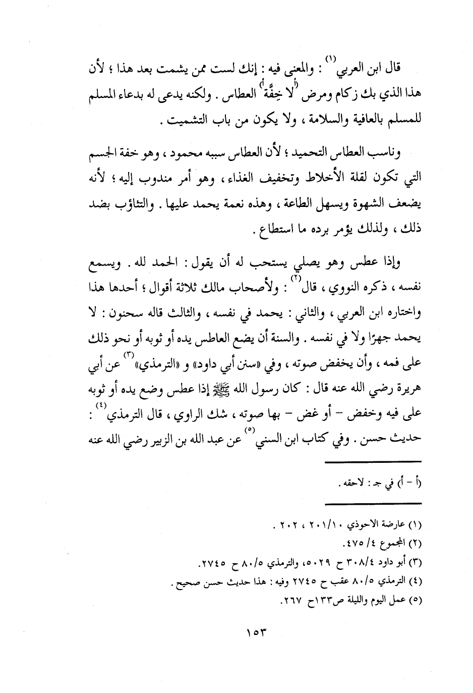 قال ابن العربي (¬1): والمعنى فيه: إنك لست ممن يشمت بعد هذا؛ لأن هذا الذي بك زكام ومرض (ألا خِفَّة أ) العطاس. ولكنه يدعى له بدعاء المسلم للمسلم بالعافية والسلامة، ولا يكون من باب التشميت.