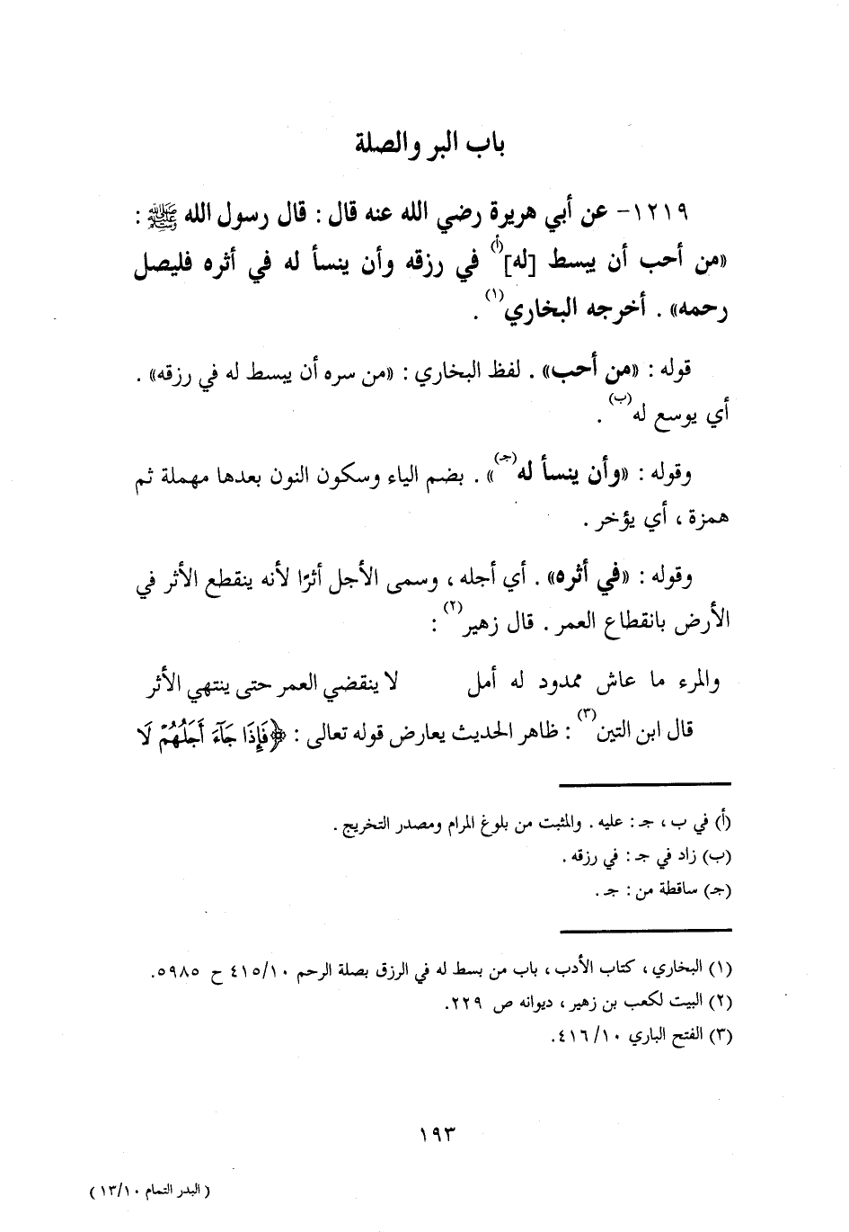 (¬1) البخاري، كتاب الأدب، باب من بسط له في الرزق بصلة الرحم 10/ 415 ح 5985.