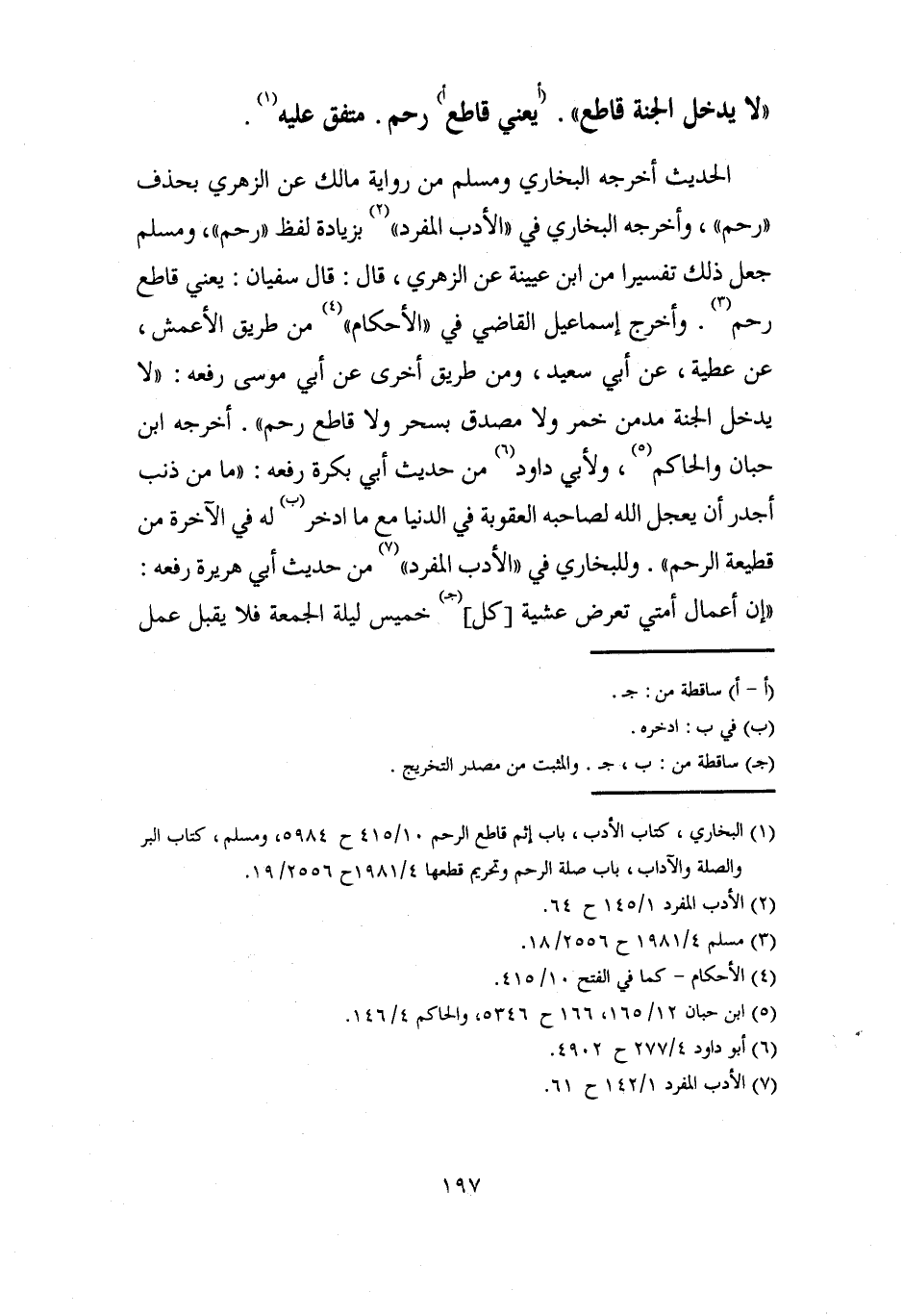 (¬1) البخاري، كتاب الأدب، باب إثم قاطع الرحم 10/ 415 ح 5984، ومسلم، كتاب البر والصلة والآداب، باب صلة الرحم وتحريم قطعها 4/ 1981 ح 19/ 2556.