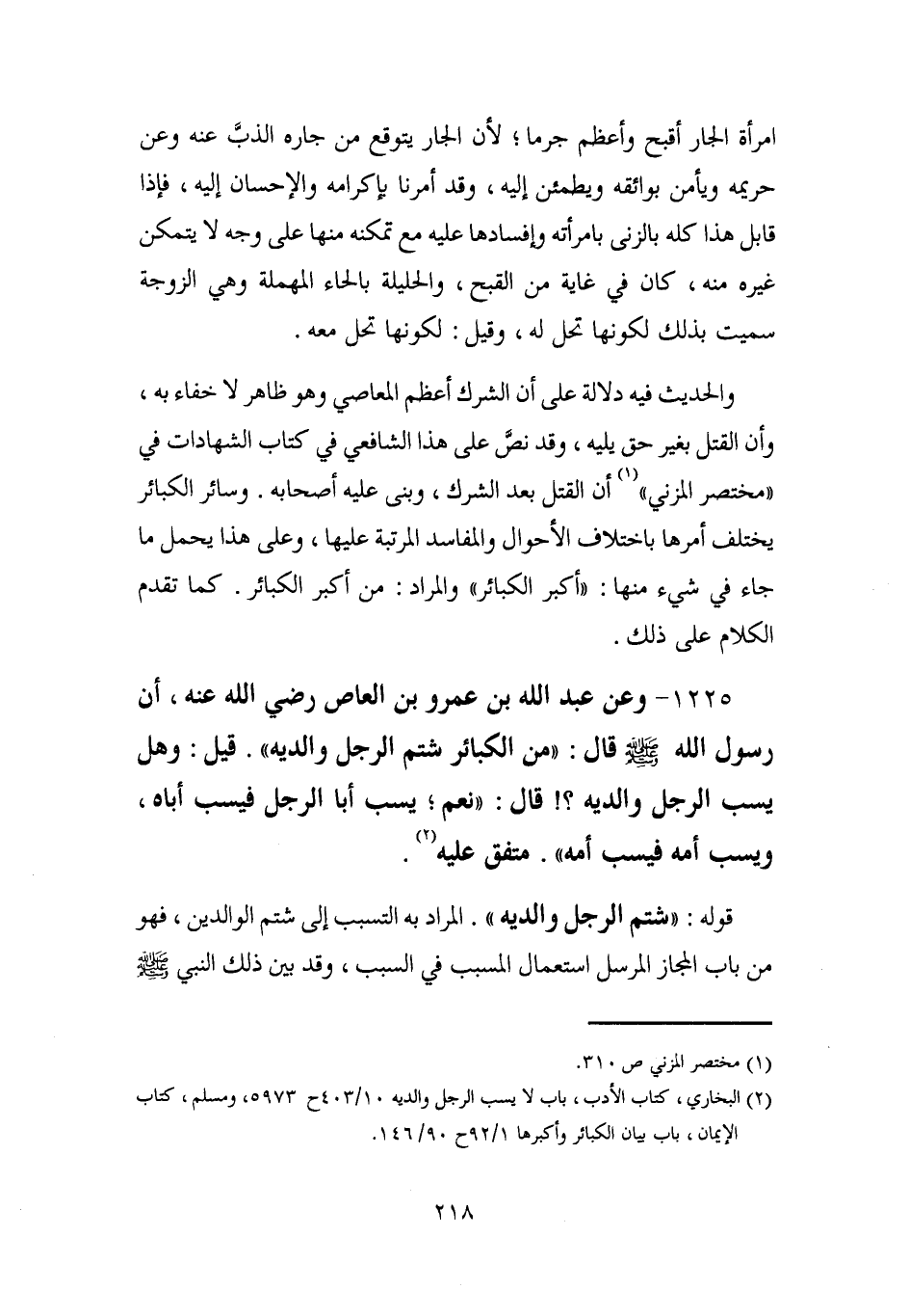 (¬2) البخاري، كتاب الأدب، باب لا يسب الرجل والديه 10/ 403 ح 5973، ومسلم، كتاب الإيمان، باب بيان الكبائر وأكبرها 1/ 92 ح 90/ 146.