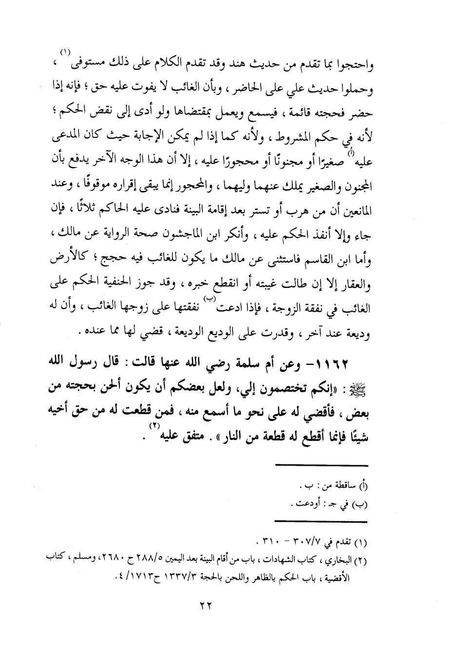 (¬2) البخاري، كتاب الشهادات، باب من أقام البينة بعد اليمين 5/ 288 ح 2680، ومسلم، كتاب الأقضية، باب الحكم بالظاهر واللحن بالحجة 3/ 1337 ح 4/ 1713.