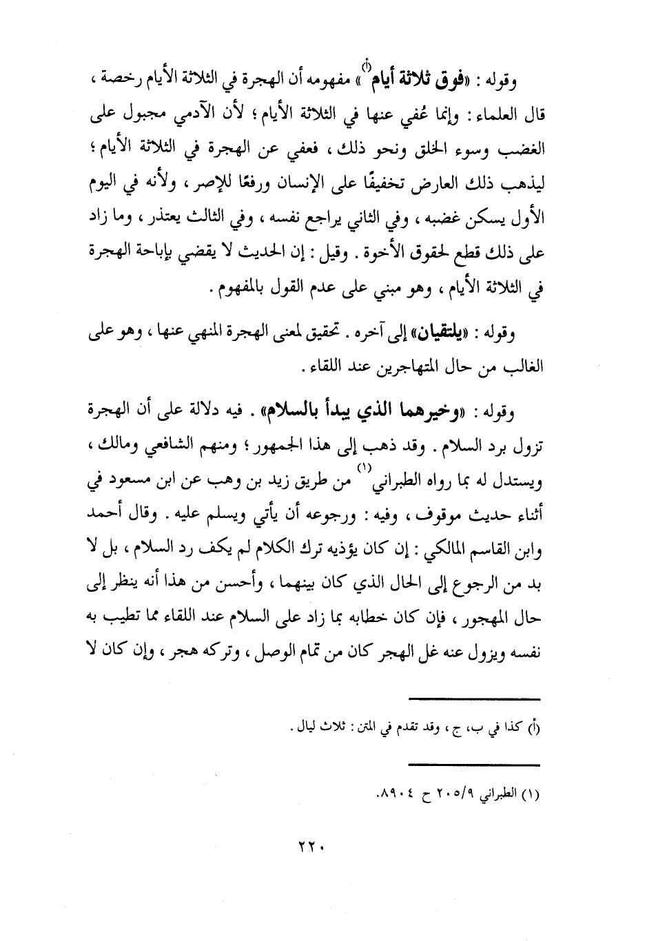 وقوله: "فوق ثلاثة أيام (أ) " مفهومه أن الهجرة في الثلاثة الأيام رخصة، قال العلماء: وإنما عُفي عنها في الثلاثة الأيام؛ لأن الآدمي مجبول على الغضب وسوء الخلق ونحو ذلك، فعفي عن الهجرة في الثلاثة الأيام؛ ليذهب ذلك العارض تخفيفًا على الإنسان ورفعًا للإصر، ولأنه في اليوم الأول يسكن غضبه، وفي الثاني يراجع نفسه، وفي الثالث يعتذر، وما زاد على ذلك قطع لحقوق الأخوة. وقيل: إن الحديث لا يقضي بإباحة الهجرة في الثلاثة الأيام، وهو مبني على عدم القول بالمفهوم.